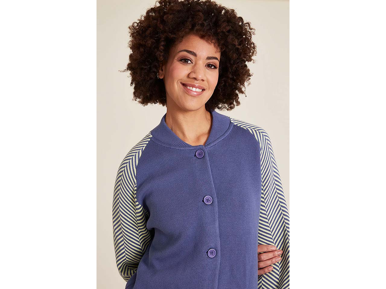 Eine Strickjacke, die an kühlen Tagen warm hält und dazu auch noch ein echter Hingucker ist. Die coole Jacke in stylischem Design besteht aus weicher Bio-Baumwolle in GOTS-zertifizierter Qualität. Durch die gemusterten Ärmel und die farblich abgesetzten Armbündchen entsteht eine modische Optik.