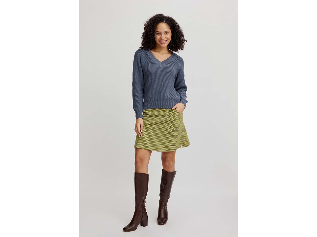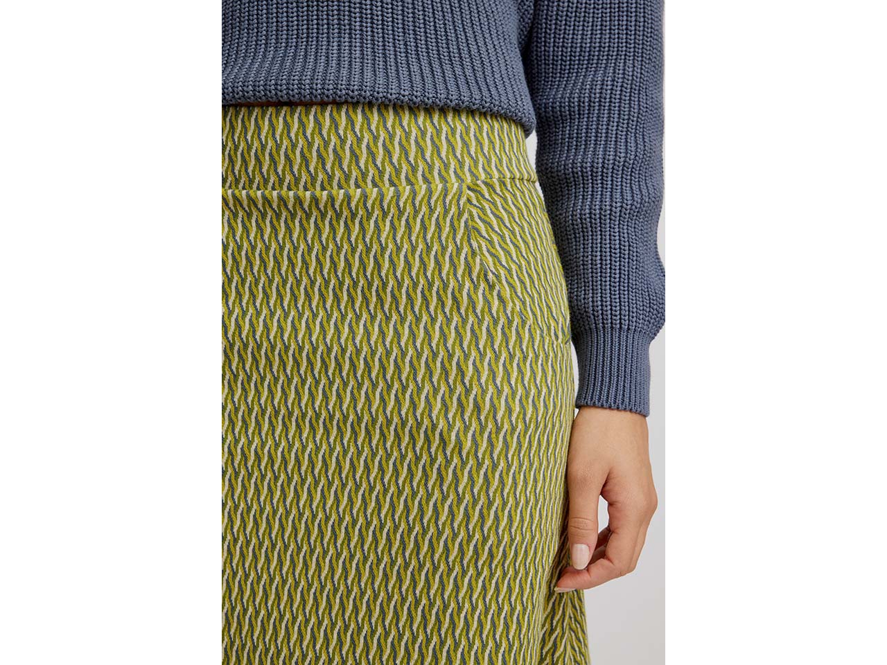 Farbenfroh, weich und perfekt für die kühle Jahreszeit! Der Rock in Jacquard-Strick aus GOTS-zertifizierter Bio-Baumwolle ist ein echtes Must-have. Ein geringer Anteil Elasthan sorgt für eine perfekte Passform. Der Rock ist mit seinen Seitentaschen bestens für Alltag und Freizeit geeignet.
