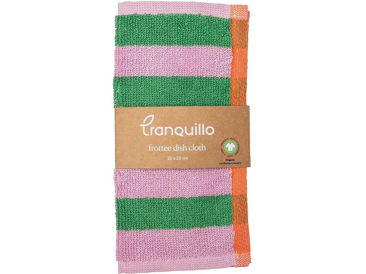 Farbenfroh und praktisch präsentiert sich das Abwaschtuch von tranquillo! Das Frottee aus GOTS-zertifizierter Bio-Baumwolle ist weich, saugfähig und langlebig. Es eignet sich hervorragend, um den Abwasch zu machen, Tische abzuwischen und viele weitere Putzarbeiten im Haushalt. Nach getaner Arbeit kann das Spültuch ganz einfach in der Waschmaschine gereinigt werden. B 22 x T 22 cm.