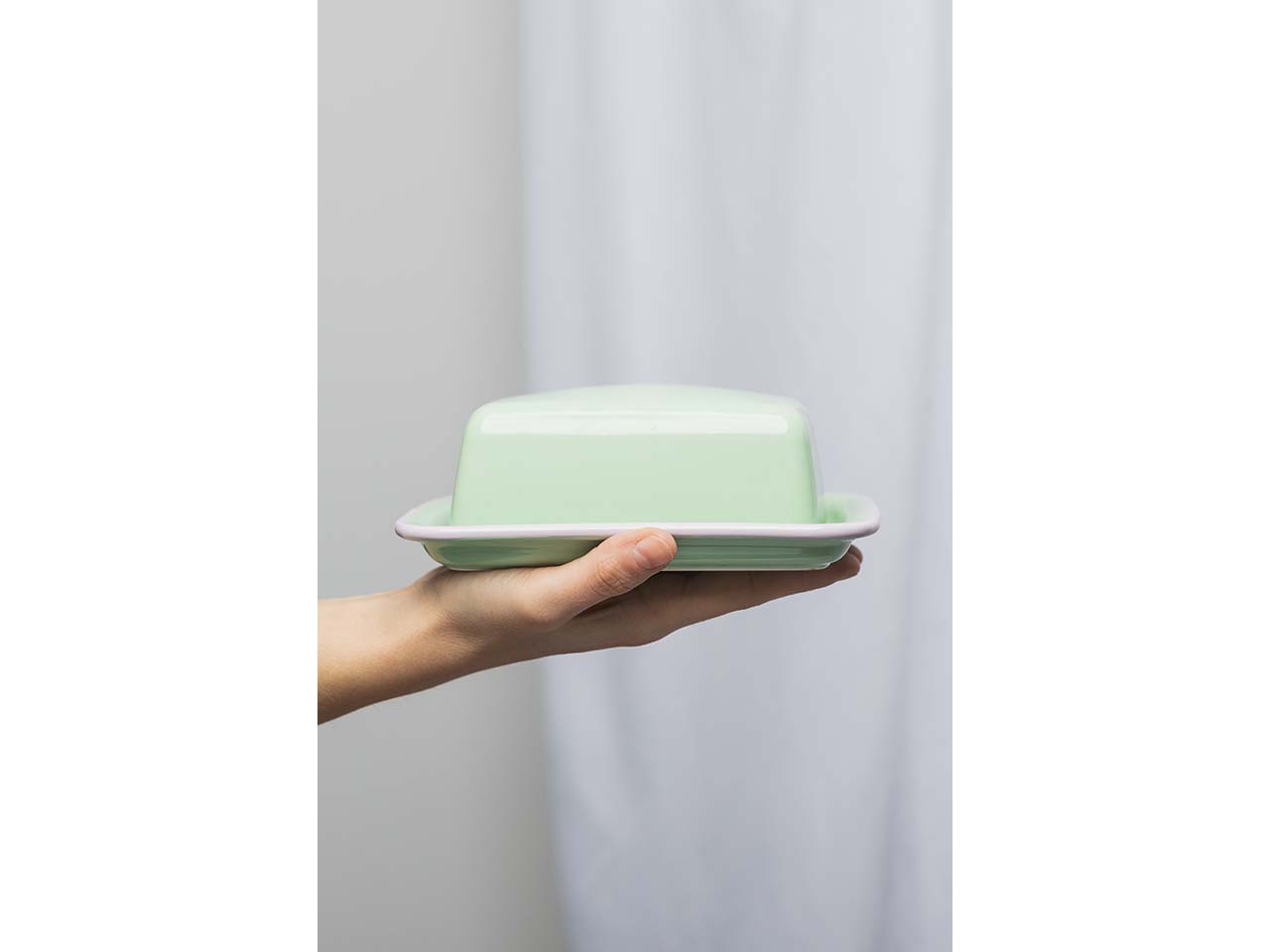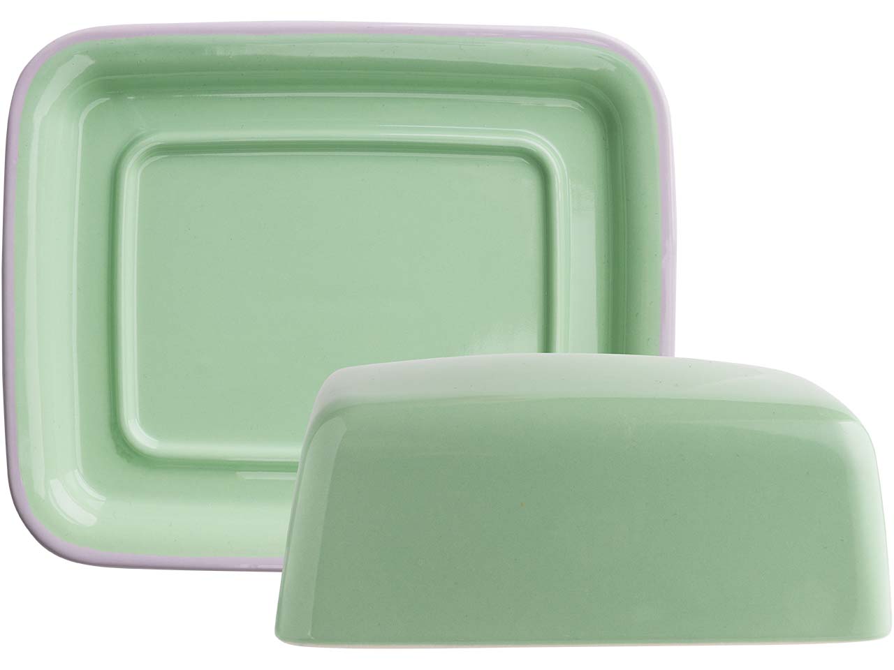 Lebendige Farbe, die Butter und Co. perfekt in Szene setzt! In der Dose ist Butter bestens aufgehoben und serviert. Hergestellt ist die Butterdose aus robustem Steingut, wodurch sie eine langlebige Qualität erhält und auch spülmaschinen- und mikrowellengeeignet ist. Das funktionale Küchenaccessoire ist ein echter Blickfänger und hält Butter länger frisch. B 17,2 x T 14,5 x H 5,2 cm.