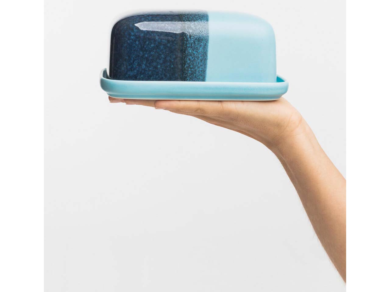 In dieser lebensmittelechten Butterdose ist Butter optimal aufbewahrt und das Geschirr macht auch optisch viel her! Das zweifarbige Design sorgt für gute Laune auf dem Frühstückstisch. Gleichzeitig ist der Inhalt vor äußeren Einflüssen geschützt und wird frisch gehalten. Jedes Produkt ist ein Unikat: Die reaktive Glasur sorgt für ganz individuelle Farbverläufe! Die hochwertig verarbeitete Butterdose in handgefertigtem Design kann nach der Benutzung zur Reinigung sogar in die Spülmaschine.