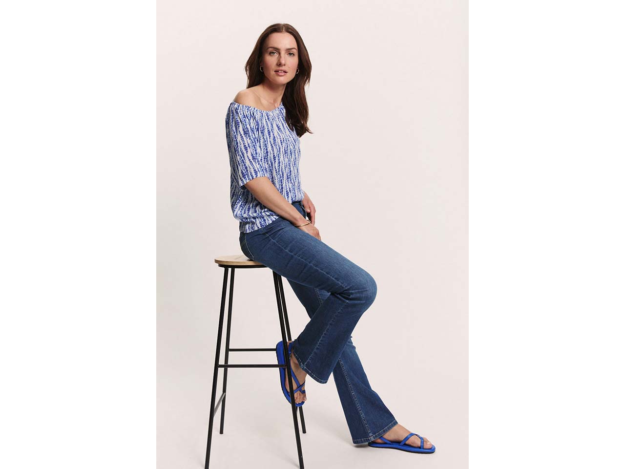 Modern, bequem und besonders luftig für warme Temperaturen: Diese Bluse von tranquillo ist ein echter Hauptgewinn! Der hübsche Carmen-Ausschnitt sitzt tief, ist volantgeschmückt und lässt die Schultern frei. Dank EcoVero™ Crinkle-Viskose ist das Oberteil besonders leicht und atmungsaktiv. Ideal, um verschiedene Outfits für den Sommer zu kreieren!