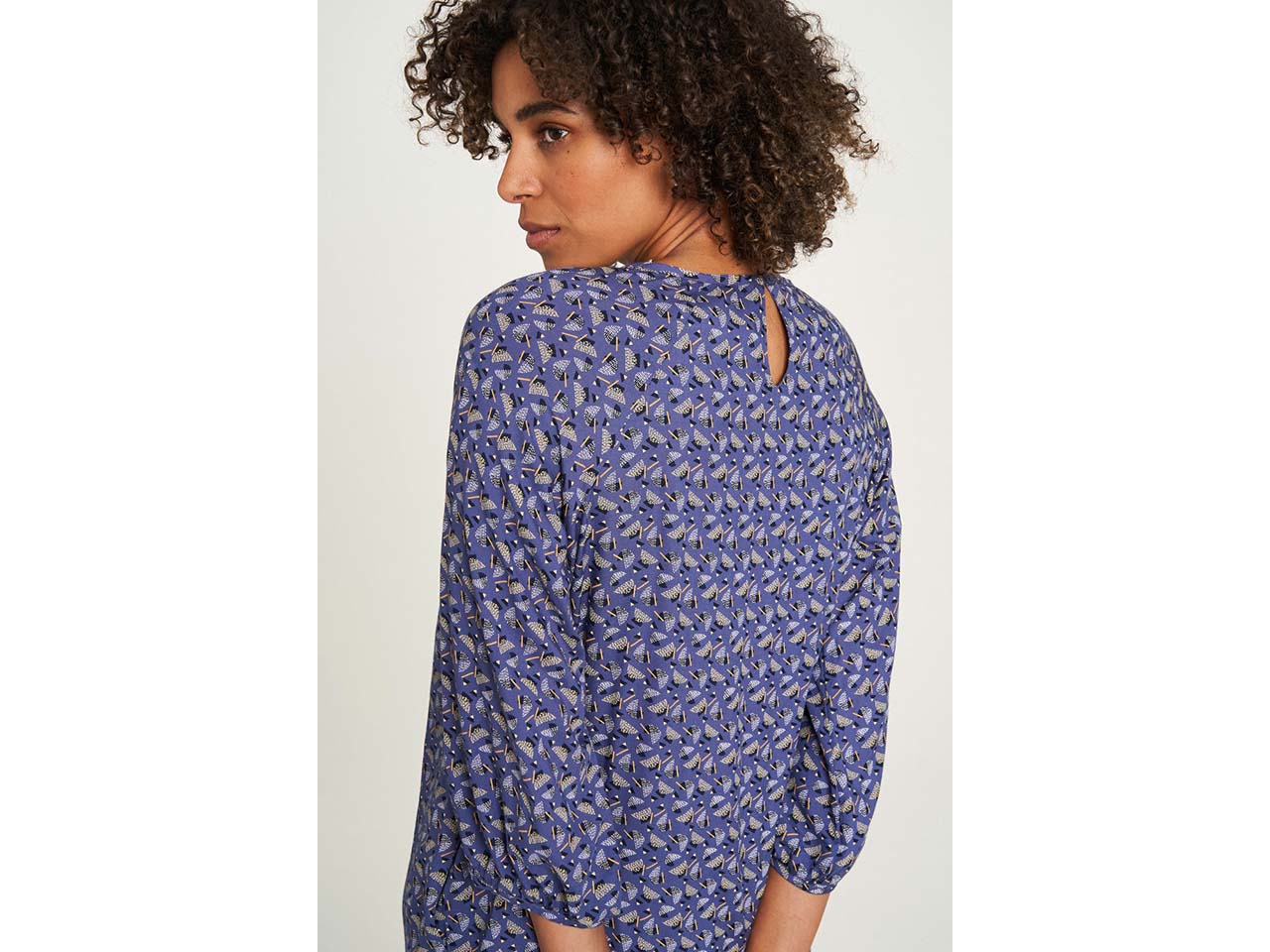 - Mit 3/4-Ärmeln und kleinem Schlitz im Nacken