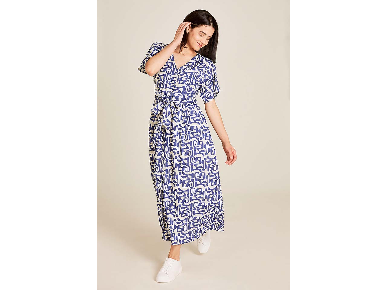 Dieses Blusenkleid wird ganz schnell zum neuen Lieblingsteil! Elegant fallend schmiegt sich das Kleid aus EcoVero™ Viskose dank tailliertem Schnitt perfekt an den Körper an. Durch die raffinierten Kellerfalten und den leichten A-Linien-Schnitt entsteht eine elegante Leichtigkeit. Individuelle Anpassungen sind mit dem Bindegürtel und der durchgängigen Knopfleiste kein Problem. Das Maxi-Kleid sieht kombiniert mit einer Strickjacke genauso schick aus wie ohne.