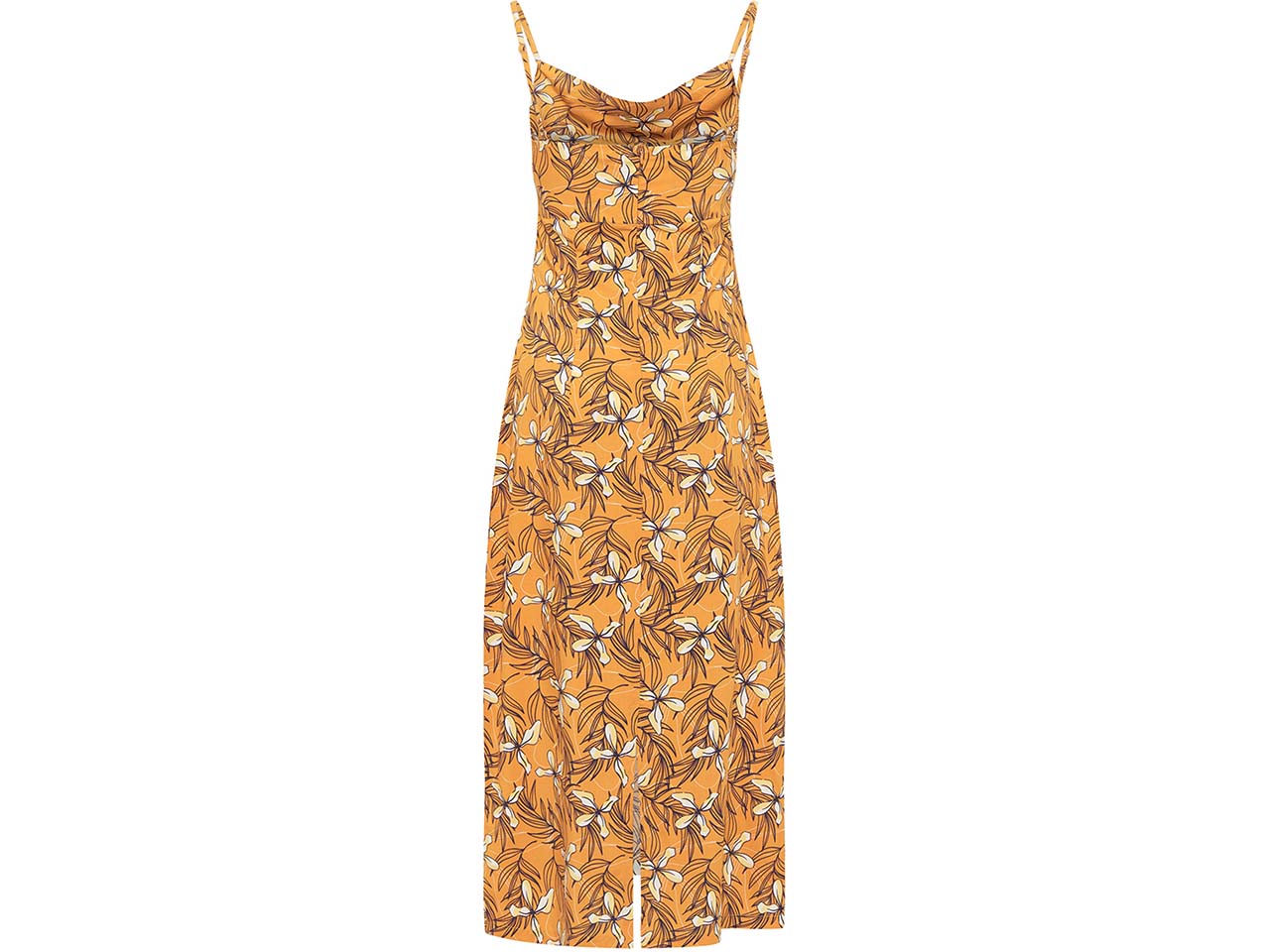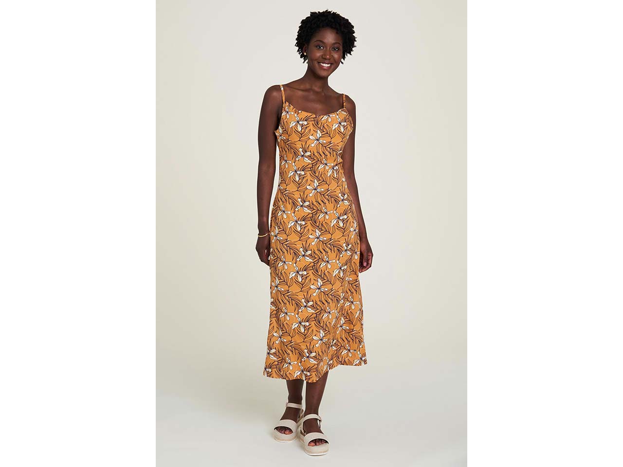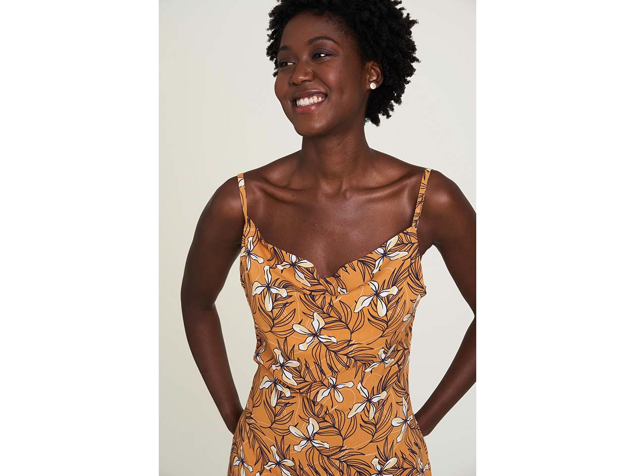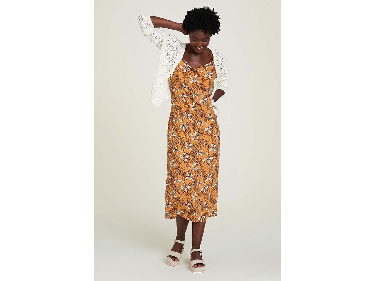 Sommerlicher Look und seidenfeiner Tragekomfort! Dieses elegant fallende Maxikleid wird zum neuen Lieblingsteil. Das Kleidungsstück ist gerade geschnitten und hat einen asymmetrisch überlappenden V-Ausschnitt in dezenter Wickeloptik, der für eine besonders modische Optik sorgt. Durch die umweltgerechte EcoVero™ Viskose fühlt sich das Kleid einfach wunderbar auf der Haut an. Bei kühlerem Wetter lässt sich das Maxikleid perfekt mit einer Strickjacke oder einem Pulli kombinieren.