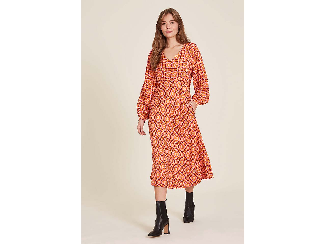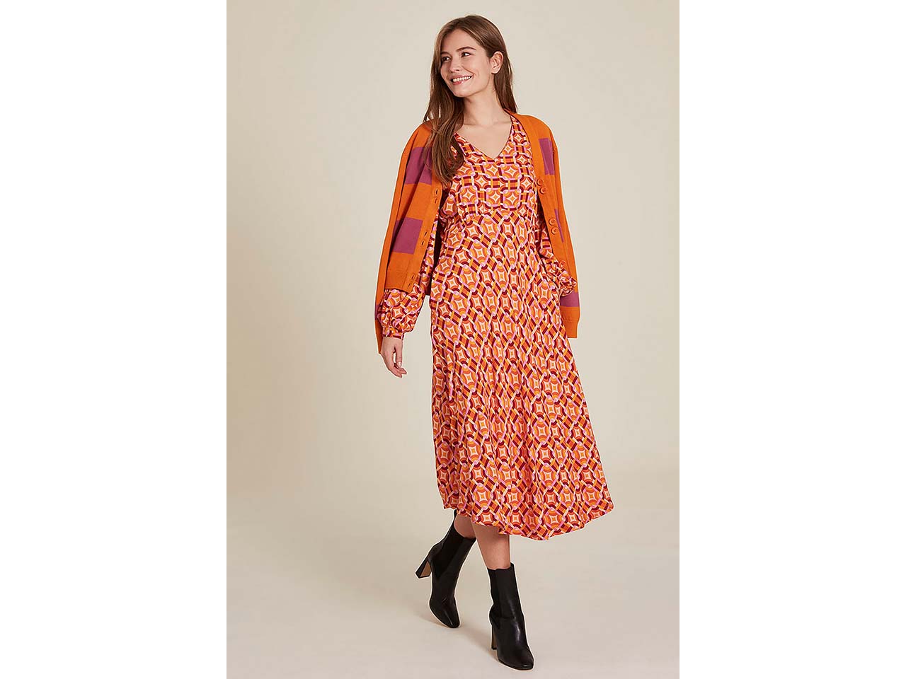 Ein Kleid, in dem sich Dame den ganzen Tag rundum wohlfühlen können. Weiche, seidige EcoVero™-Viskose schmiegt sich an den Körper und macht jede Bewegung mit. Das Maxi-Kleid hat lange Ärmel und eignet sich so für fast alle Jahreszeiten. Modische Details wie der V-Ausschnitt und der leichte ausgestellte Schnitt zeichnen das lange Kleid aus.