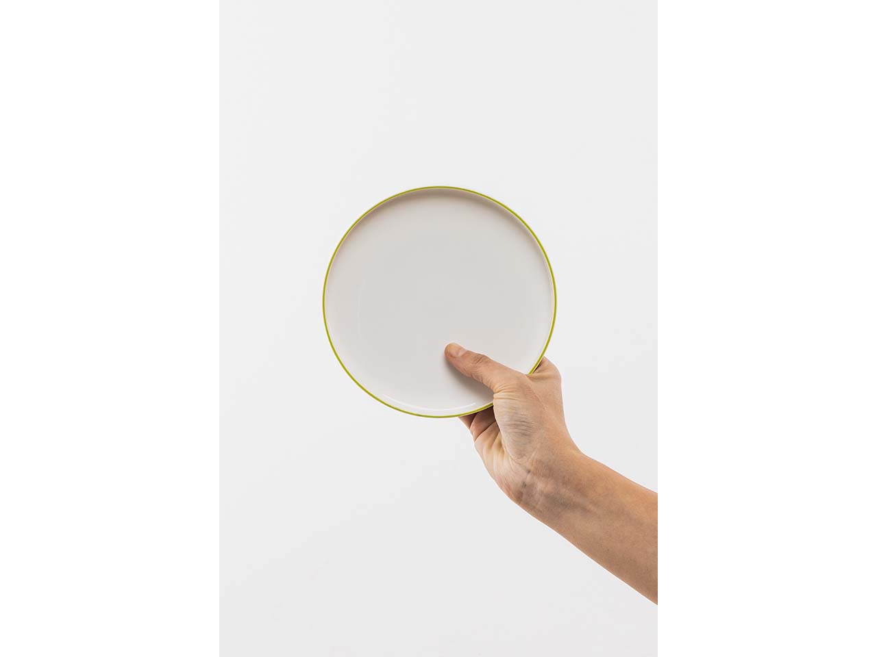 Auf diesem Teller kommt jedes Dessert perfekt zur Geltung! Der minimalistische Stil mit farbigem Rand macht das Geschirr zeitlos-elegant. Die Größe ist perfekt für Kuchen, Kekse und Co. Der mikrowellen- und spülmaschinengeeignete Teller ist aus Porzellan hergestellt und dadurch robust und langlebig.