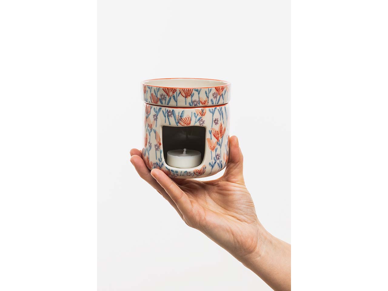 Ätherische Öle, Duftöl oder Duftwachs entfalten mit dieser Duftöllampe ihren einzigartigen Duft! Das Accessoire aus robustem Steingut hat ein wunderschönes, handgestempeltes Muster und fügt sich so nahtlos in Wohnräume ein. Dank großem Einschub sind Teelichter schnell eingesetzt. Die integrierte Schale für Öl oder Duftmelts ist abnehmbar und kann so einfach gereinigt werden. Die Lieferung erfolgt ohne Teelicht.