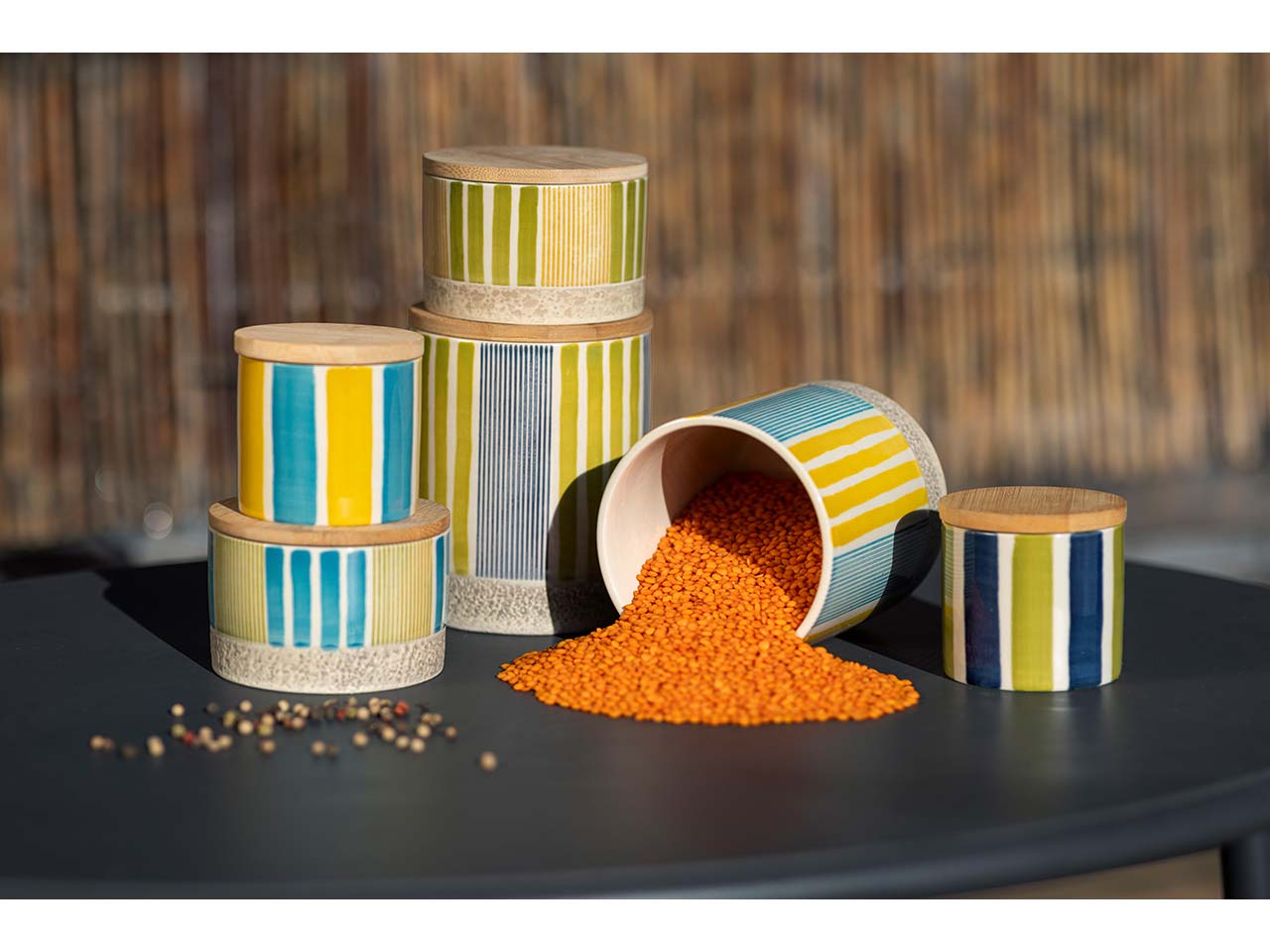 Aufbewahrungsdose im Streifendesign