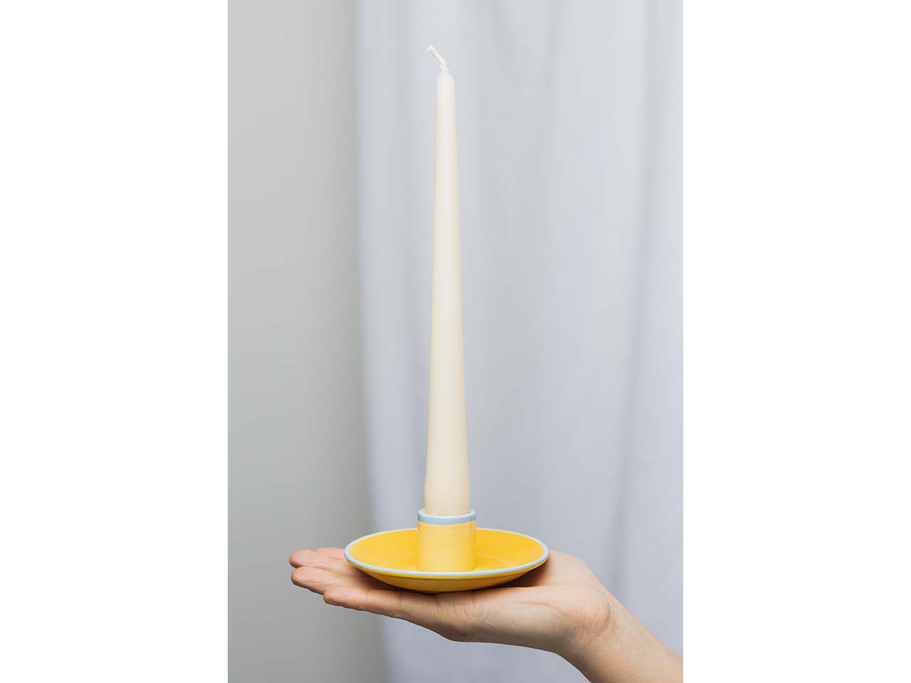 - Farbenfroher Kerzenständer aus robustem Steingut