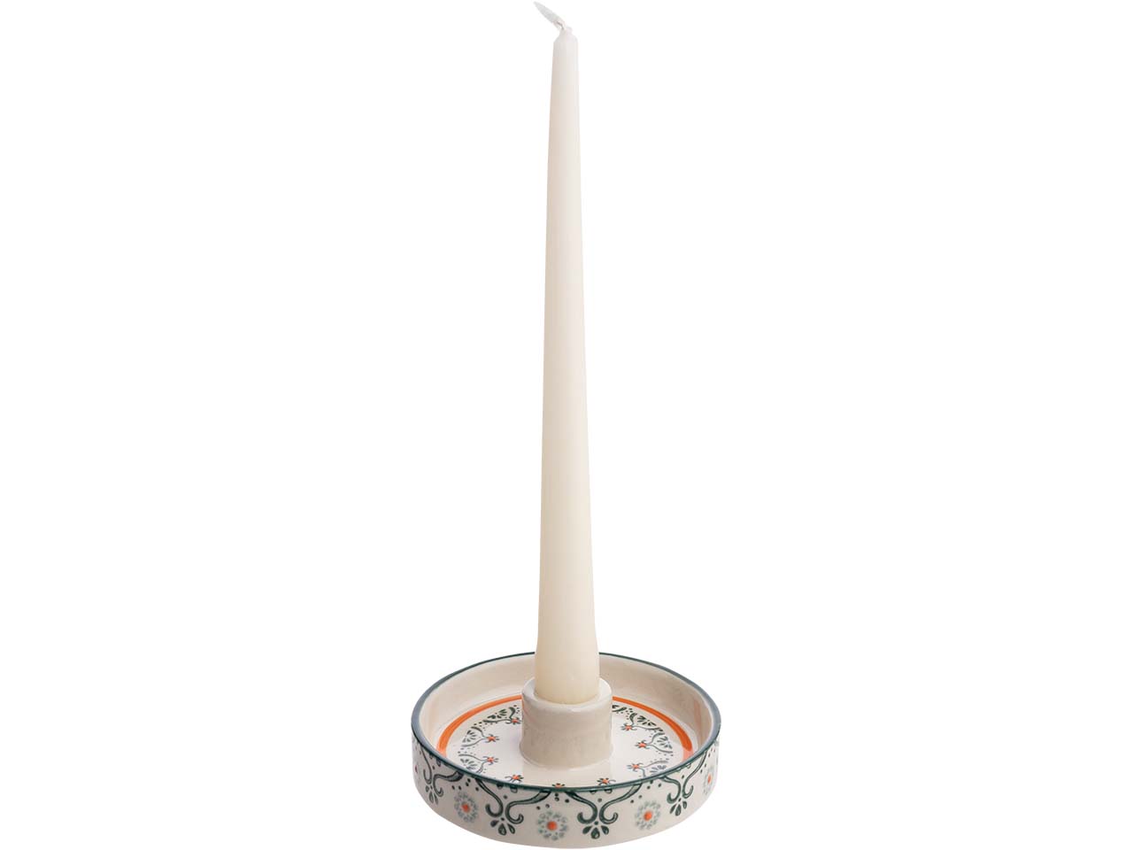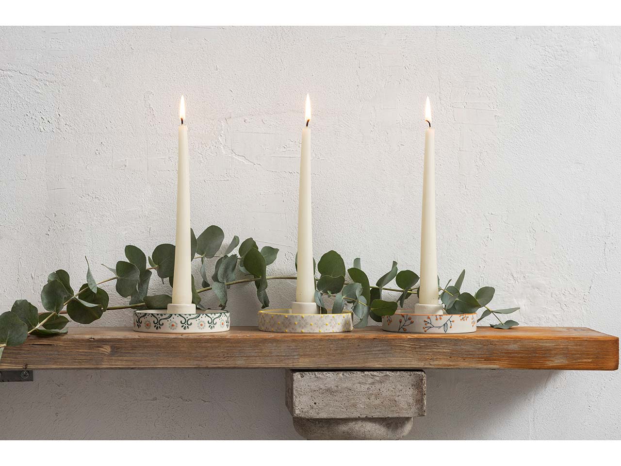 Dieser Kerzenständer von tranquilo kombiniert farbenfrohe Muster mit dezenter Eleganz. Durch die Herstellung aus Steingut ist die Dekoration ausgesprochen robust und kann sogar in der Spülmaschine gereinigt werden. Vor allem für Stabkerzen eignet sich der Kerzenständer optimal. Highlight ist das filigrane, handgestempelte Muster, das mit seiner Einzigartigkeit verzückt. B 11 x T 11 x H 3 cm.