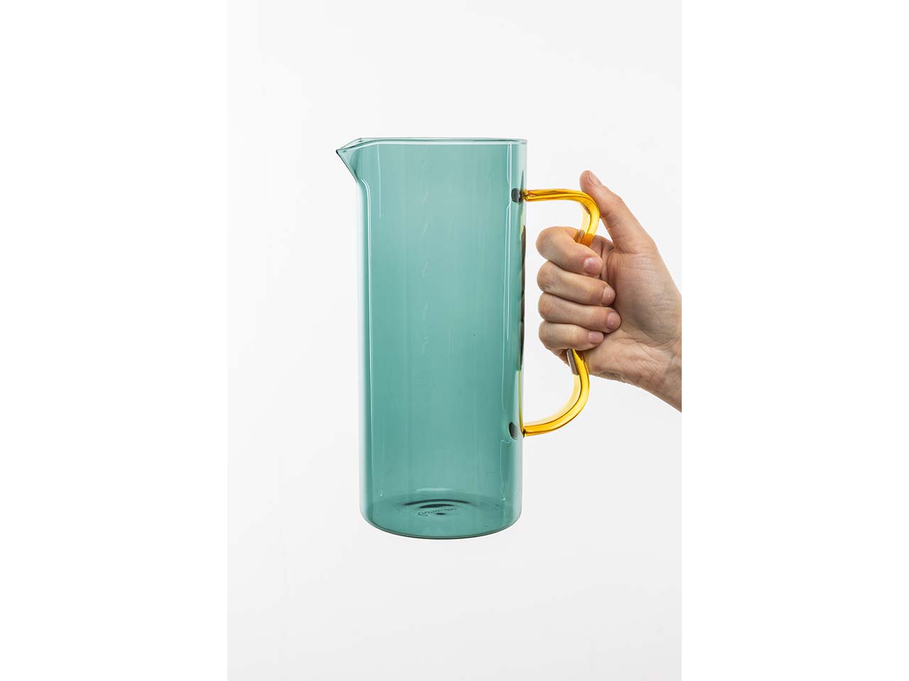 Viel mehr als nur ein Krug: Dieses Küchenaccessoire ist ein kleines Designobjekt und ein echter Allrounder. Mit dem Fassungsvermögen von 1,3 l eignet sich die Karaffe zum Anbieten von Kaltgetränken wie Wasser oder Eistee, aber auch als einzigartige Blumenvase. Die schlichte Formensprache wird durch den geschwungenen Griff aufgebrochen, sodass eine moderne, trendige Optik entsteht. Das Borosilikatglas ist hitzebeständig, geschmacksneutral und für die Spülmaschine geeignet.