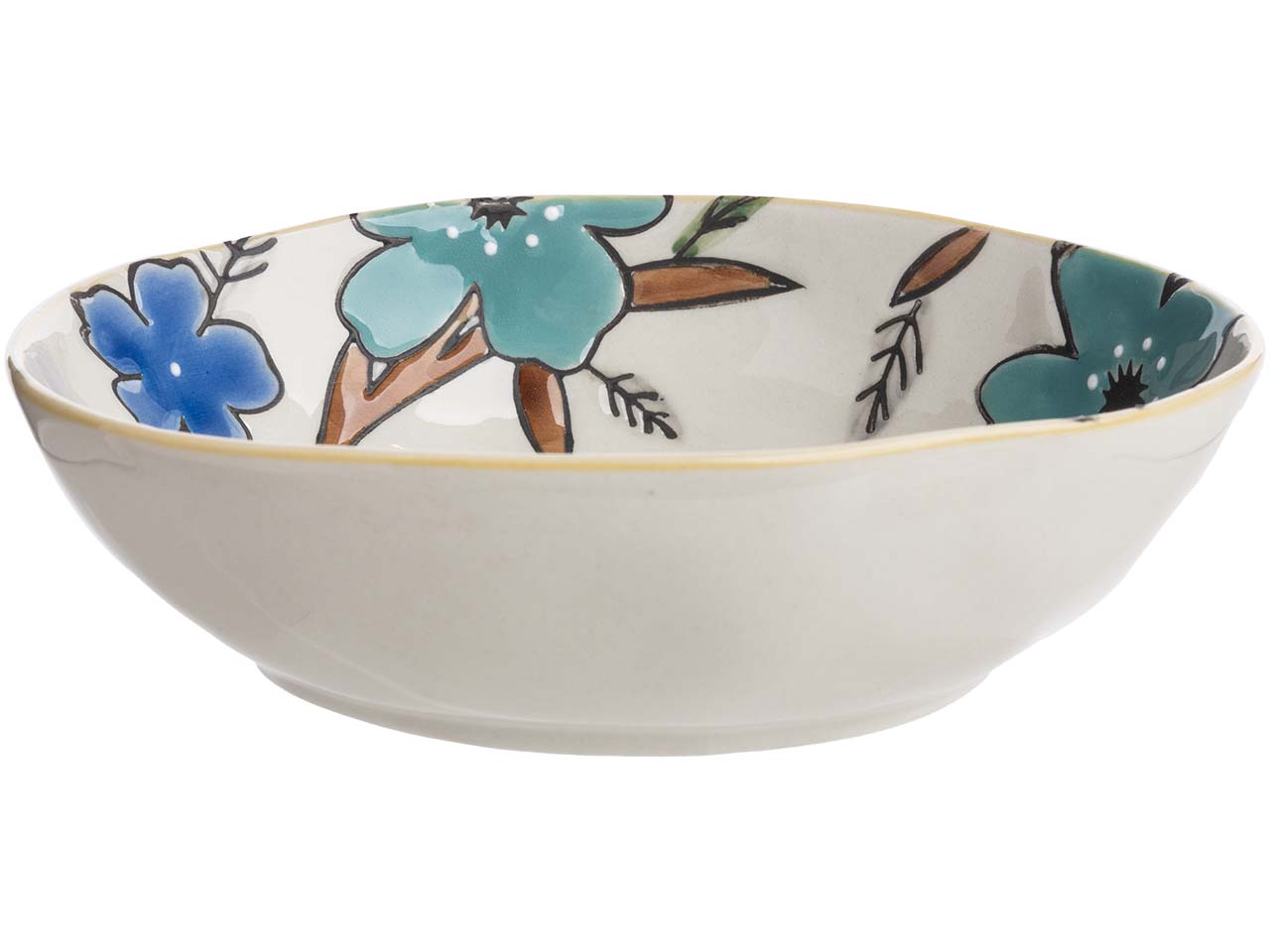 Mit dieser Seifenschale genießt man zu jeder Jahreszeit einen Hauch von Sommer! Das handgestempelte Blumenmotiv ist immer wieder hübsch anzusehen und sorgt für gute Laune. Dank der Herstellung aus Steingut hat die Schale mit praktischen Ablauflöchern eine langlebige, robuste Qualität. B 13 x T 11 x H 4 cm.