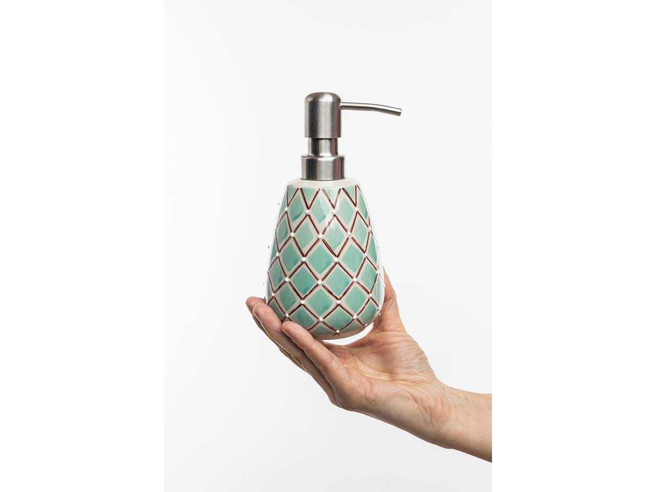 Der stilvolle Flüssigseifenspender aus Keramik bringt ein elegantes Retro-Flair ins Bad! Das robuste Steingut verleiht dem Spender eine langlebige Qualität. Der Seifenspender ist ideal für Flüssigseifen oder Handdesinfektionsmittel geeignet. Die große Öffnung erleichtert das Befüllen und Reinigen. Der Pumpspender sorgt für eine einfache und kontrollierte Dosierung der Seife.