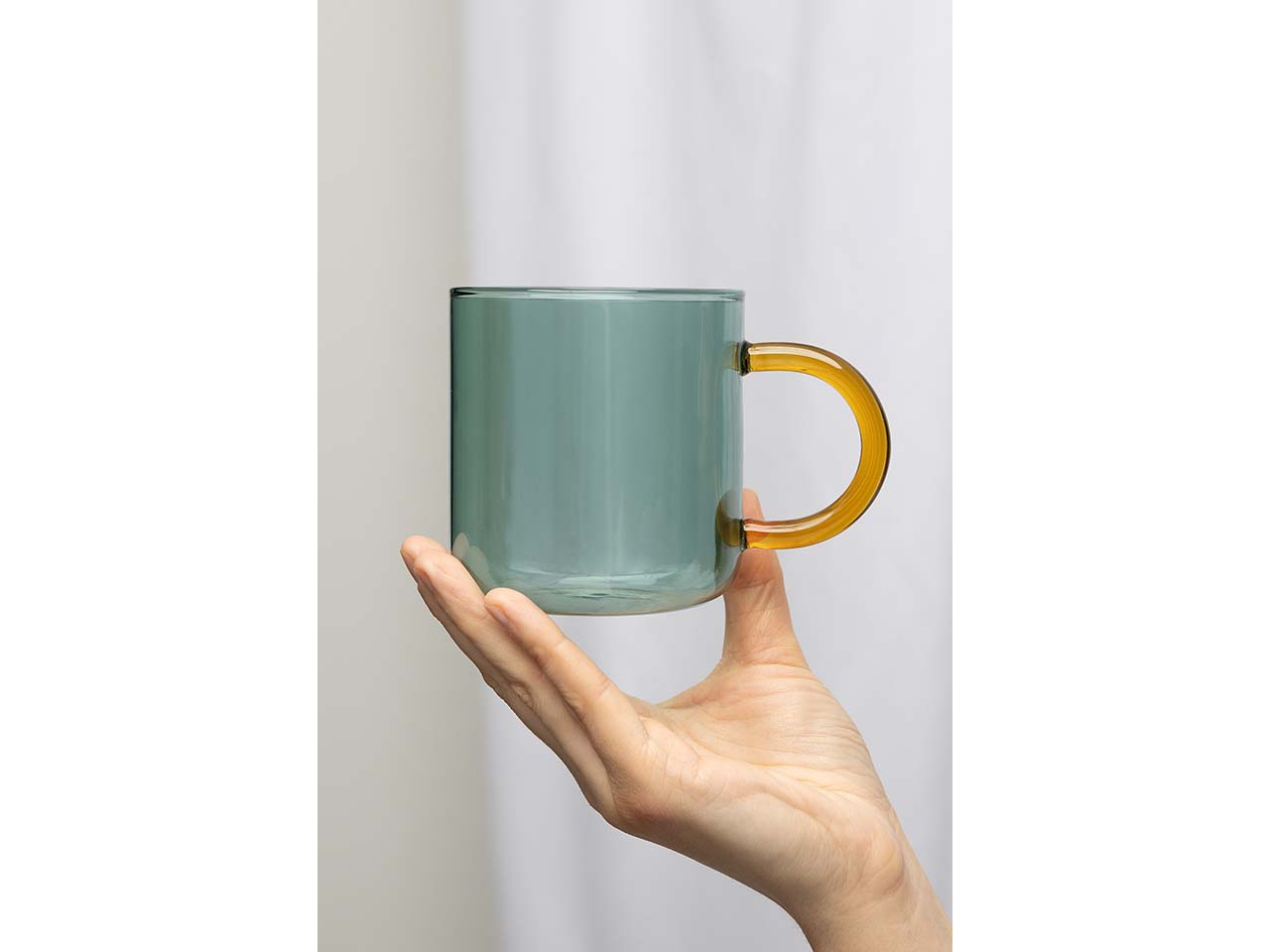 - Elegante, farbenfrohe Tasse aus hitzebeständigem Borosilikatglas