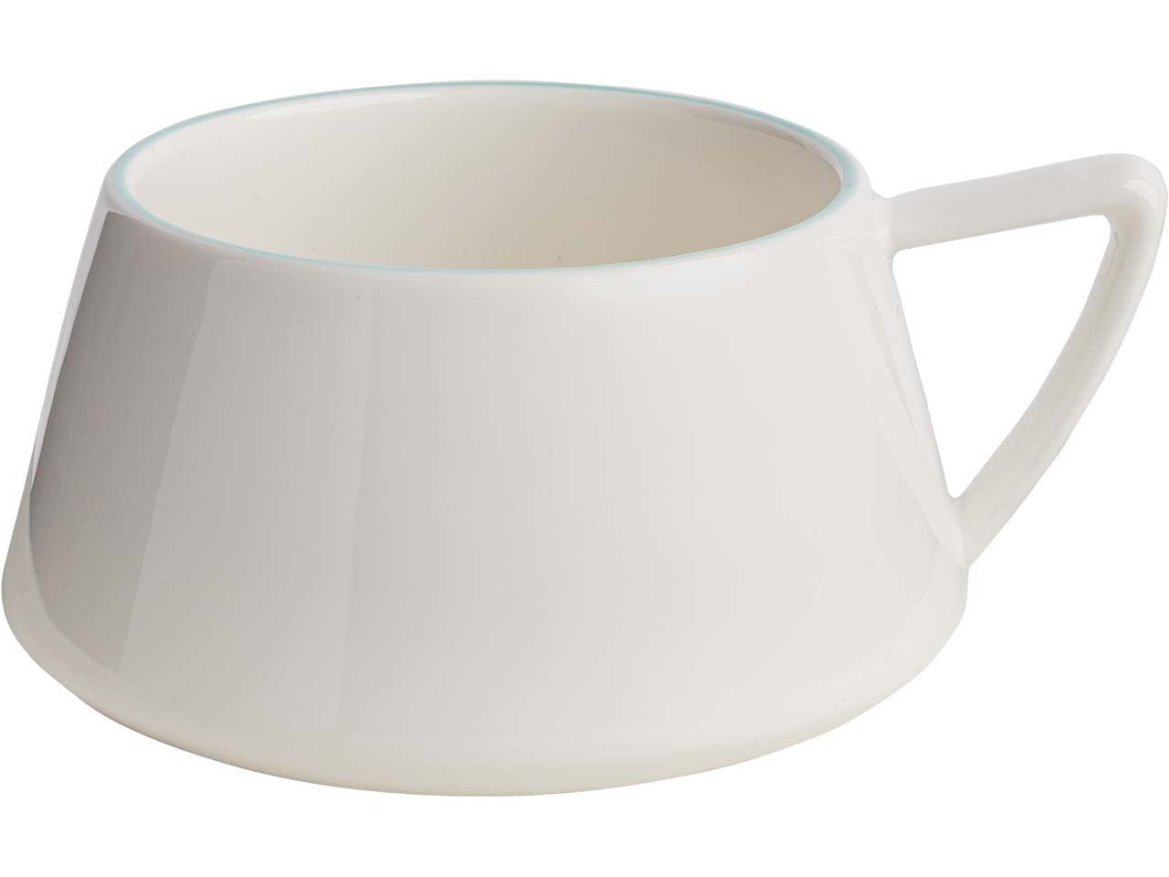 Klare Formensprache, zeitlos und einfach schick anzusehen: Diese Tasse mit passender Untertasse ist bei jedem Nachmittagskaffee mit dabei. Das Porzellangeschirr ist perfekt aufeinander abgestimmt. Die geometrischen Formen verleihen ihm eine moderne Optik. Diese unterstreicht der farbige Rand an Tasse und Untertasse. Die Untertasse bietet viel Platz für einen Löffel oder Gebäck. Das Set hat eine ideale Größe für den Genuss von Tee, Kaffee und anderen Heißgetränken. Beide Teile bestehen aus Porzellan und können in die Spülmaschine sowie in die Mikrowelle.