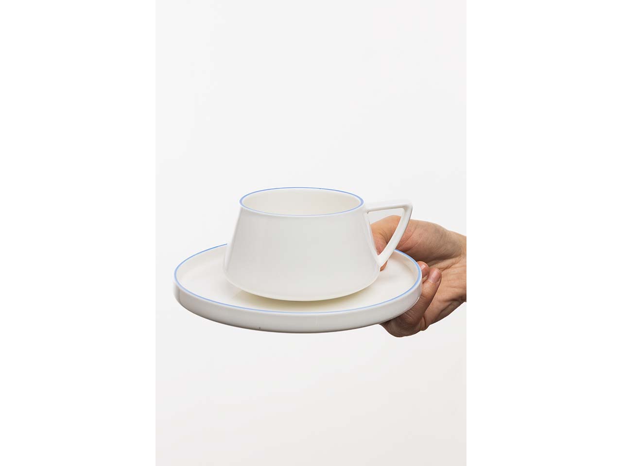 - Modern und kantig designte Porzellantasse mit Untertasse