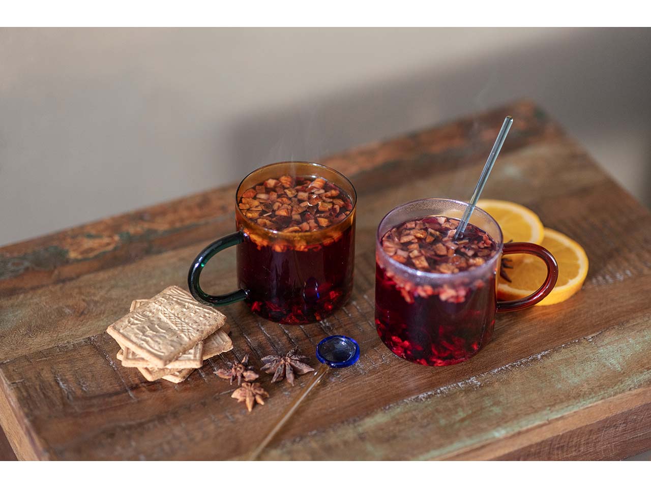 Elegante, farbenfrohe Tasse aus hitzebeständigem Borosilikatglas
