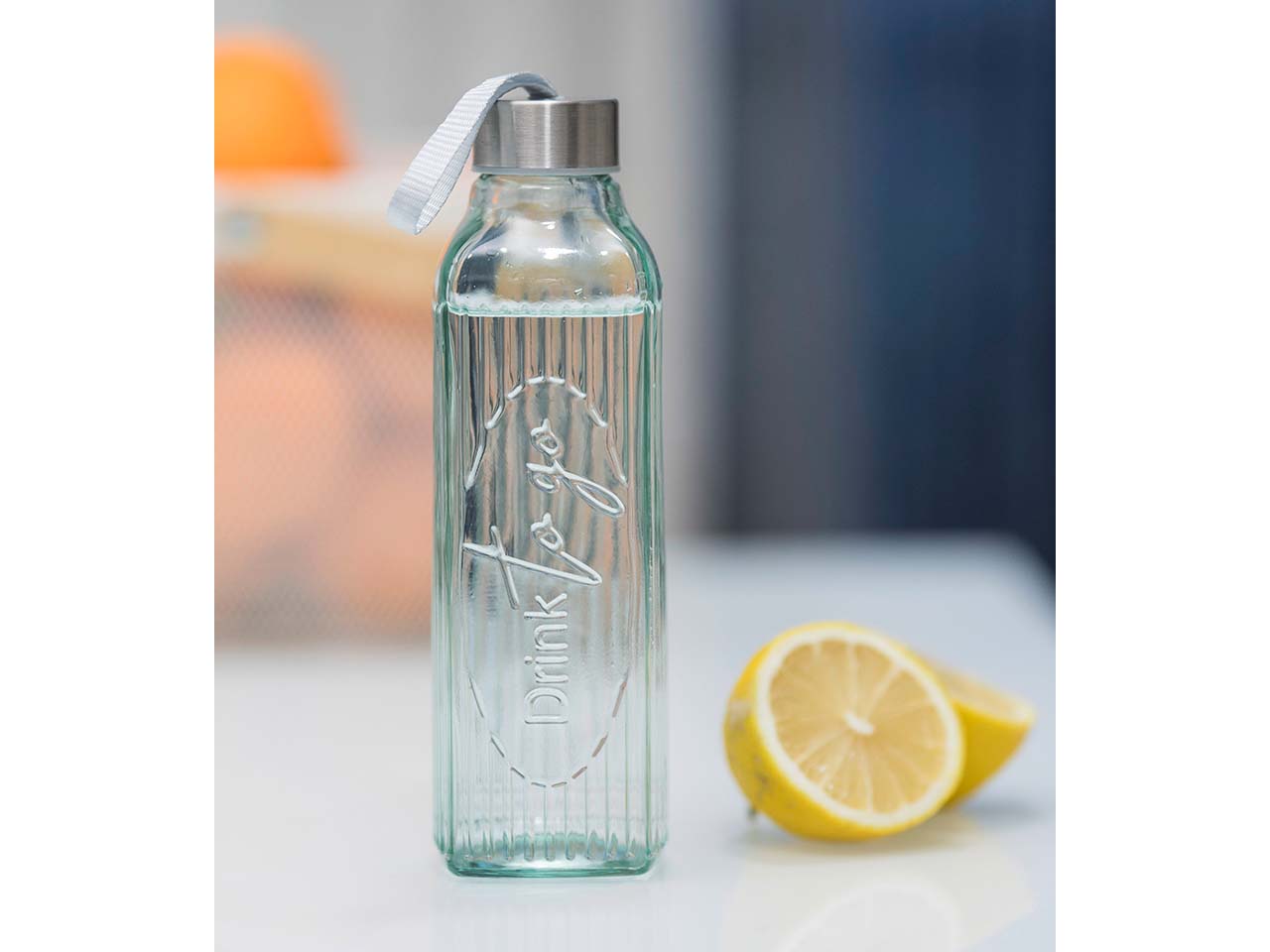 Durch die Verwendung von Recyclingglas werden wertvolle Rohstoffe geschont und Energie bei der Herstellung eingespart. Die Trinkflasche stammt von einem führenden spanischen Hersteller mit langjähriger Erfahrung im Altglas-Recycling.