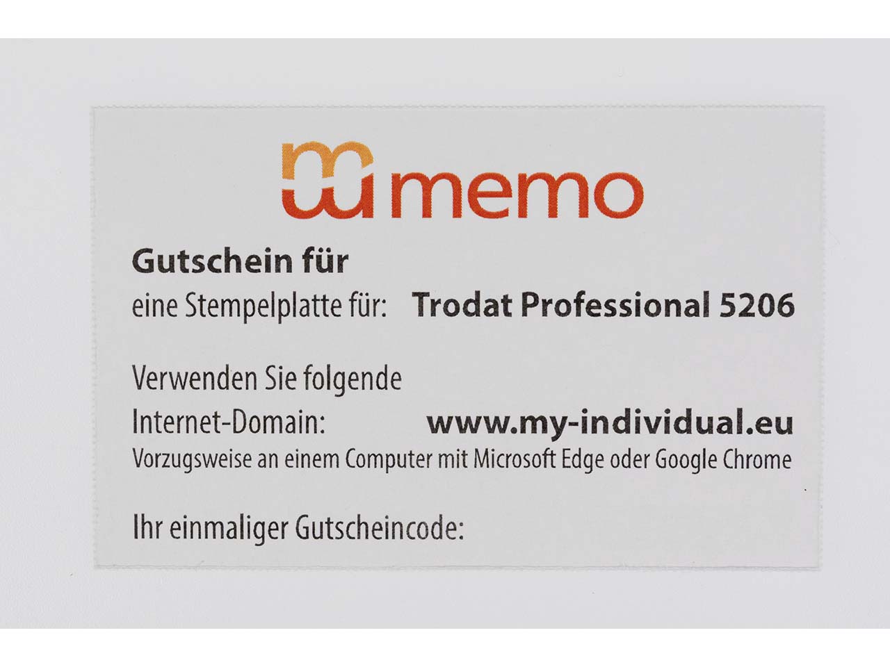 Mit der Lieferung erhalten Sie einen Gutscheincode, den sie auf memo-stempel.de einlösen. Alternativ können Sie Ihre Daten auch per Post direkt an den Hersteller einschicken. Die individualisierte Textplatte wird nach einigen Tagen vom Hersteller verschickt.