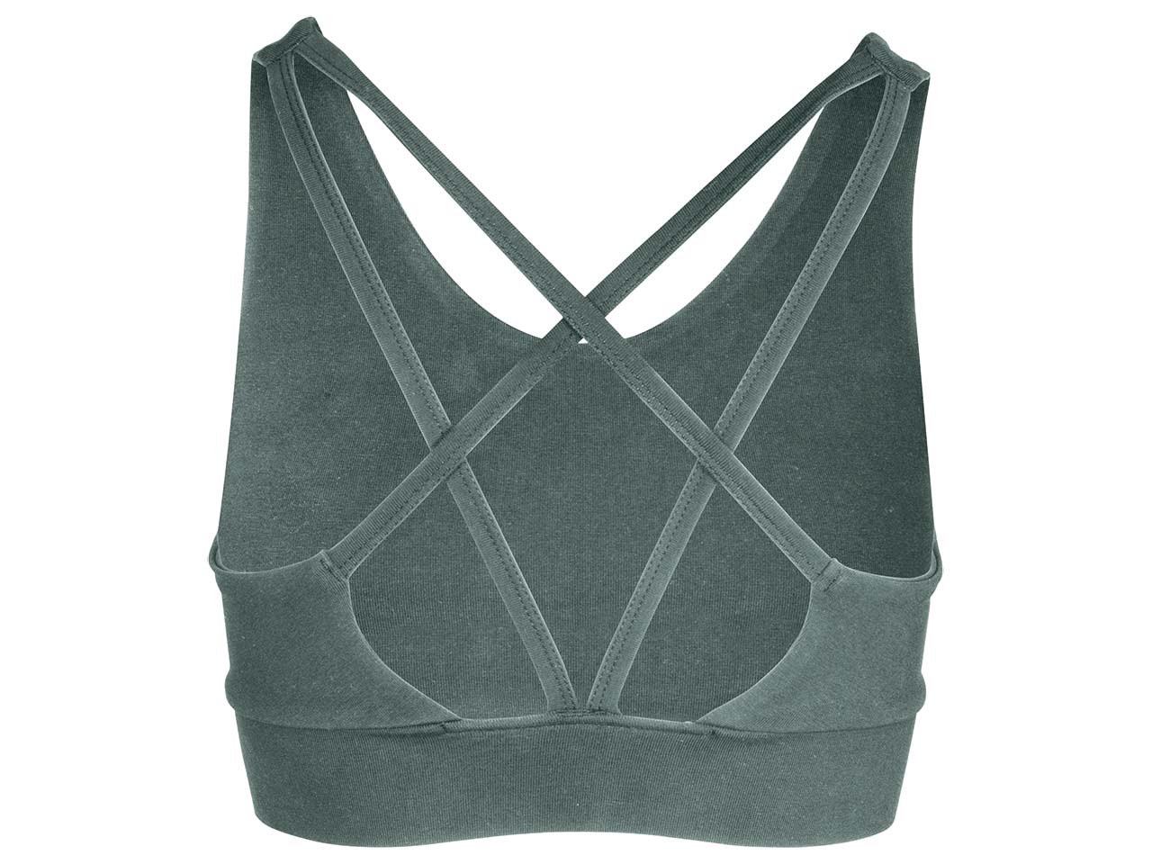 In diesem sportlichen Top vereinen sich Nachhaltigkeit, Tragekomfort und Bewegungsfreiheit! Auch optisch lässt das Bustier keinerlei Wünsche offen. Gefertigt ist es aus weicher, GOTS-zertifizierter Bio-Baumwolle und recyceltem Elasthan, das sich elastisch an den Körper schmiegt und daher perfekt sitzt. Das Material ist atmungsaktiv und damit ideal für sportliche Aktivitäten wie Yoga oder Fitness geeignet. Das breite Unterbrustband sorgt dabei für einen starken Halt, sodass auch intensive Einheiten möglich sind. Ein echter Blickfang sind die Riemchen-Träger, die sich am Rücken überkreuzen. Ein Must-have für sportlich aktive Damen! Das Beste: Das Kleidungsstück ist fair und sozial produziert!