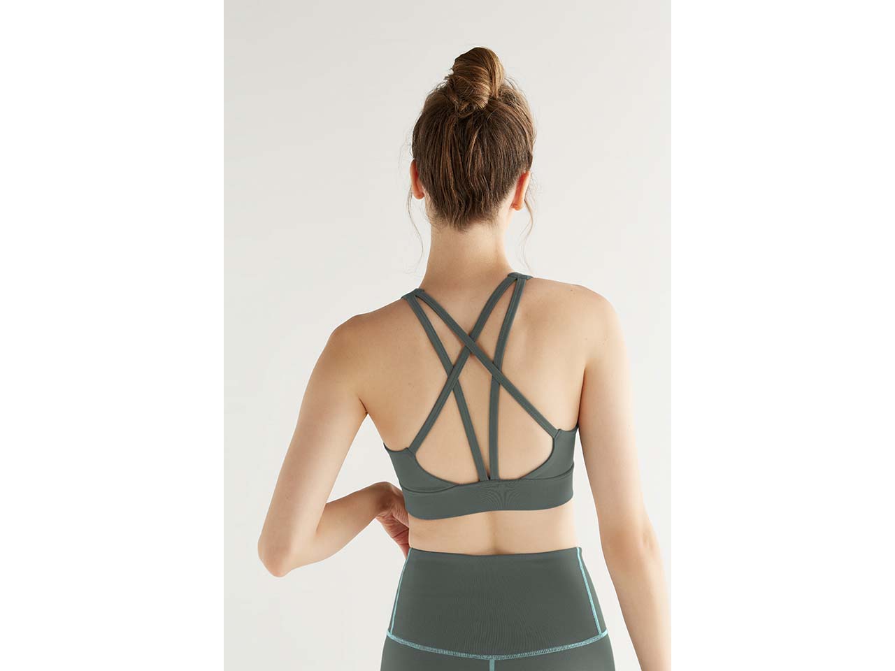 In diesem sportlichen Top vereinen sich Nachhaltigkeit, Tragekomfort und Bewegungsfreiheit! Auch optisch lässt das Bustier keinerlei Wünsche offen. Gefertigt ist es aus weicher, GOTS-zertifizierter Bio-Baumwolle und recyceltem Elasthan, das sich elastisch an den Körper schmiegt und daher perfekt sitzt. Das Material ist atmungsaktiv und damit ideal für sportliche Aktivitäten wie Yoga oder Fitness geeignet. Das breite Unterbrustband sorgt dabei für einen starken Halt, sodass auch intensive Einheiten möglich sind. Ein echter Blickfang sind die Riemchen-Träger, die sich am Rücken überkreuzen. Ein Must-have für sportlich aktive Damen! Das Beste: Das Kleidungsstück ist fair und sozial produziert!