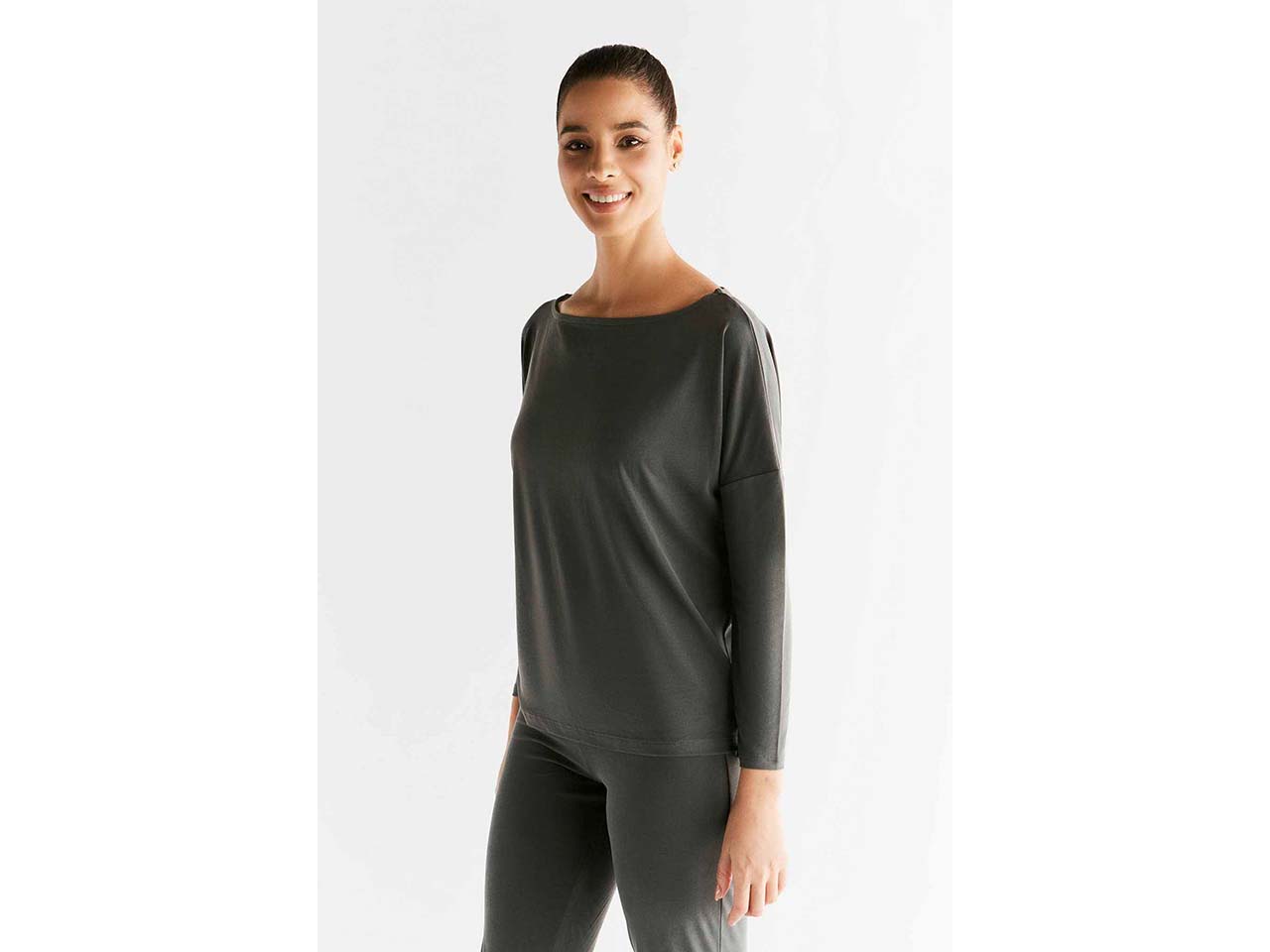 Wer sich rundum wohlfühlt, kann sich optimal auf den Sport konzentrieren. Deswegen sitzt das Langarmshirt ganz relaxt am Körper und engt nicht ein. Der Materialmix aus recyceltem Polyester und Tencel™ Modal ist ideal für leichte sportliche Betätigung beim Yoga, Pilates oder auch Fitnessübungen. Die weiche, kühlende Qualität bietet ganz viel Tragekomfort! Der U-Boot-Ausschnitt sorgt für viel Bewegungsfreiheit.