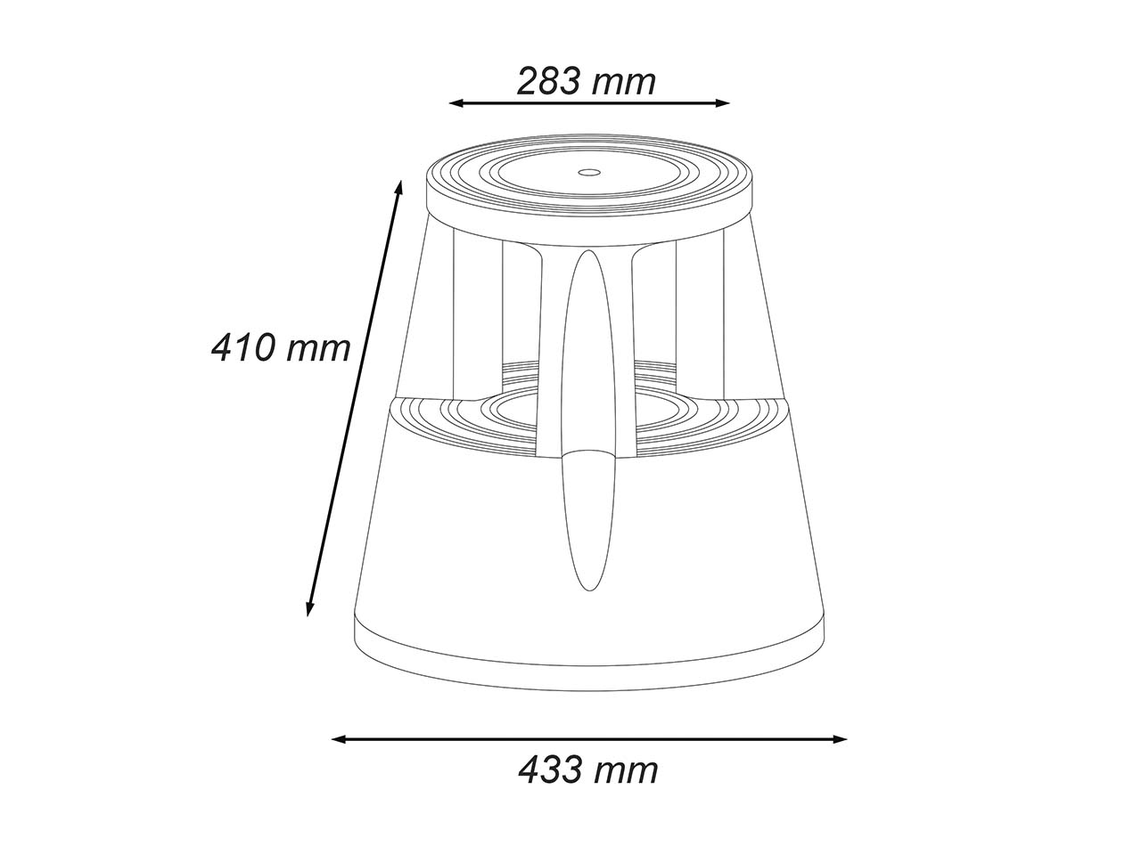 Massiver Rollhocker aus chlorfreiem Kunststoff. Die Rollen versinken unter Belastung automatisch. Mit rutschfestem Belag und Gummiring für sicheren Stand. Gewicht 2,8 kg. Ø unten 44 cm, Ø oben 30 cm, H 43 cm.