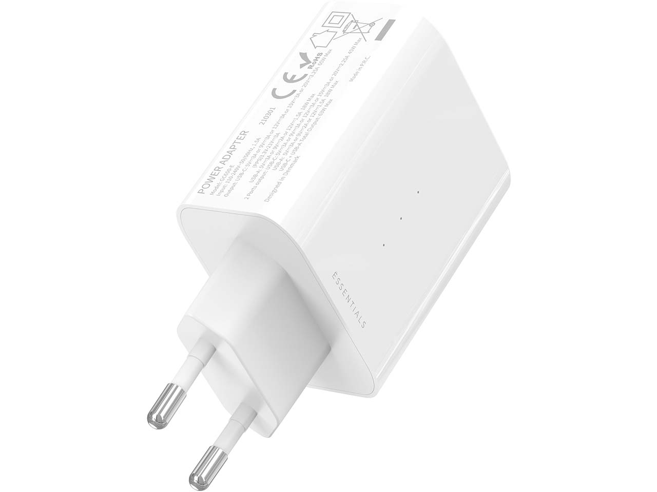 - 65-W-Ladegerät mit USB-A- und USB-C-Anschluss für gleichzeitiges Laden von zwei Geräten