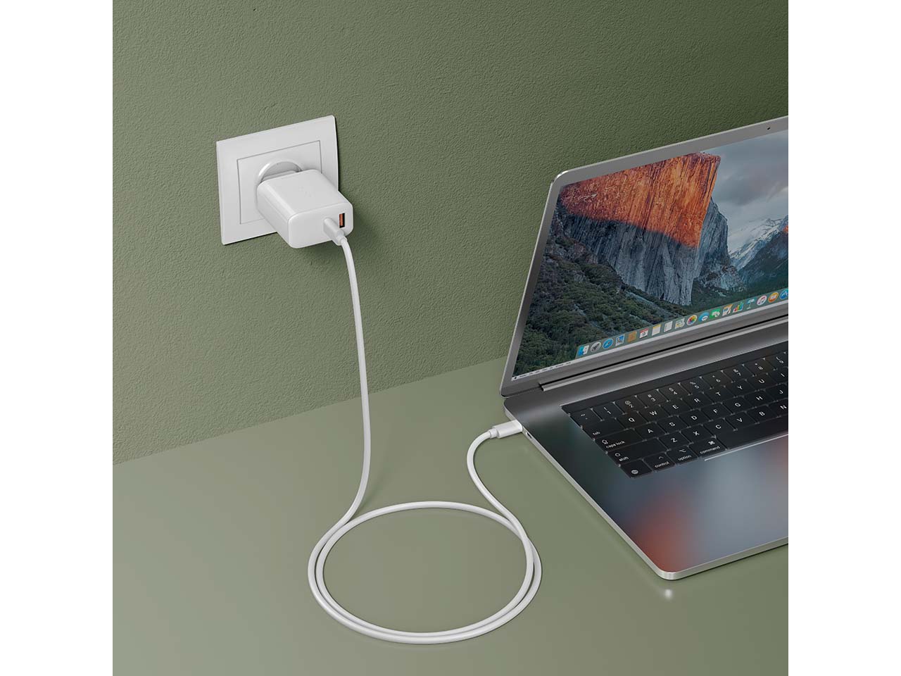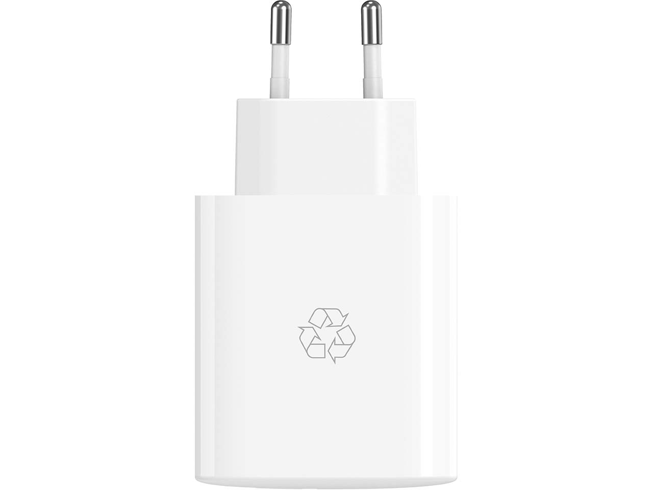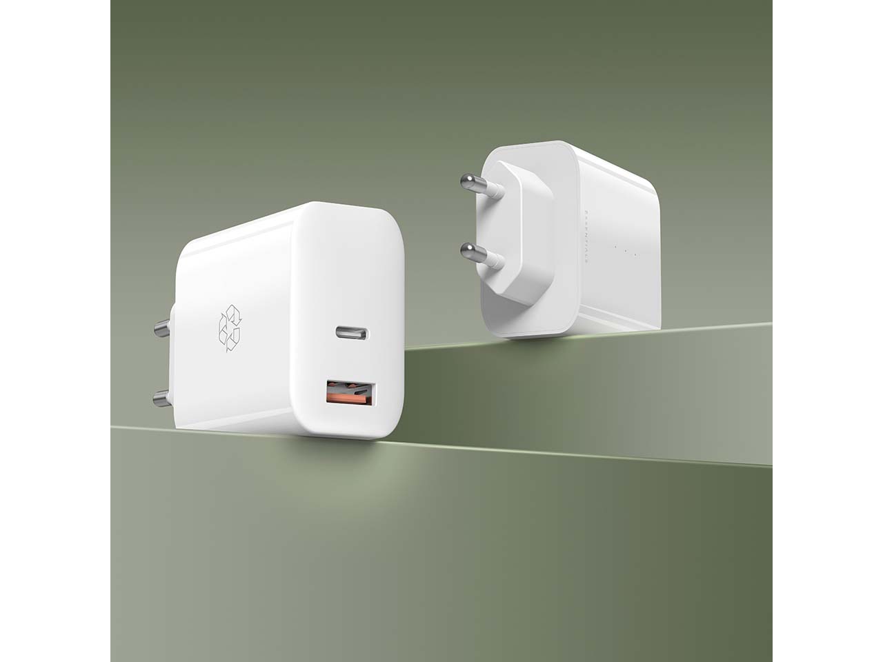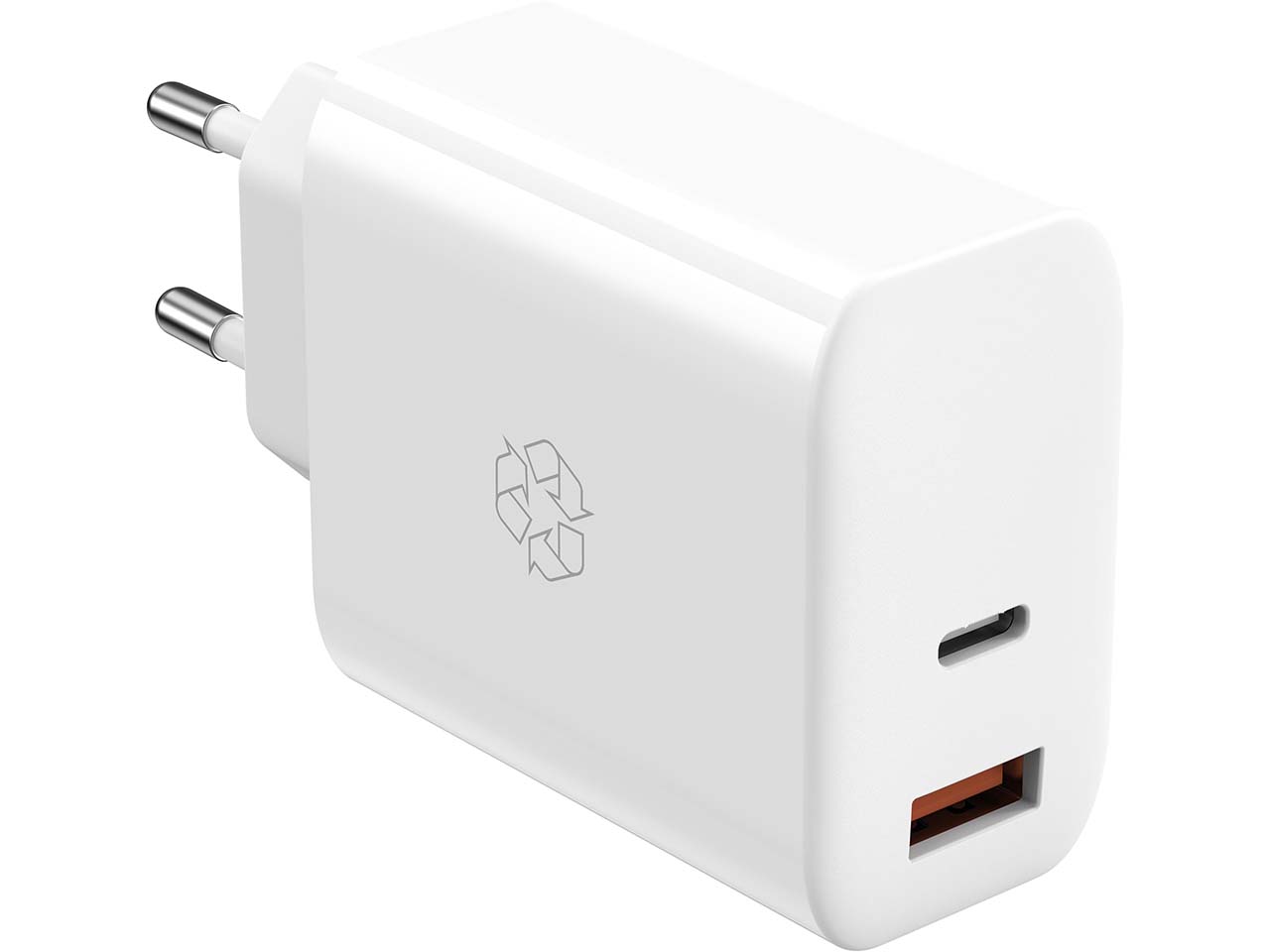 Das kompakte Ladegerät mit Dual-Port-Design ermöglicht das gleichzeitige Aufladen von zwei Geräten über USB-A und USB-C. Dank USB-C Power Delivery (PD) werden Laptops, Tablets und Smartphones besonders schnell aufgeladen. Das leichte, platzsparend gebaute Netzteil mit nur 100 g Gewicht und passt so in jede Reisetasche. Die universelle Kompatibilität macht es zum perfekten Begleiter für Reisen oder den täglichen Gebrauch. Das Ladegerät ist aus recyceltem Kunststoff gefertigt und nach dem GRS zertifiziert.