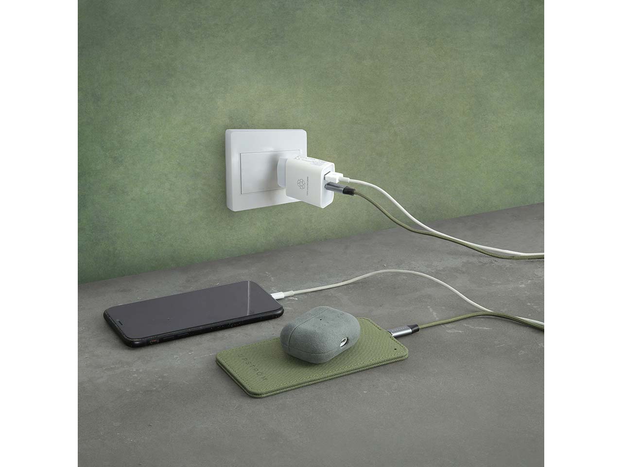 Sieht schick aus, ist umweltverträglich hergestellt und lädt Geräte von Apple, Samsung und Co. schnell wieder auf! Zum Aufladen werden Smartphone, Bluetooth-Kopfhörer, etc. einfach auf den Wireless Charger gelegt. Der hier verwendete Stoff besteht aus recycelten PET-Flaschen, die so nicht im Abfall landen und ein zweites Leben erhalten. Das universelle Ladegerät punktet mit geringem Gewicht, integrierten Sicherheitssystemen und einem einzigartigen Design. B 175 x L 105 x H 33 mm.