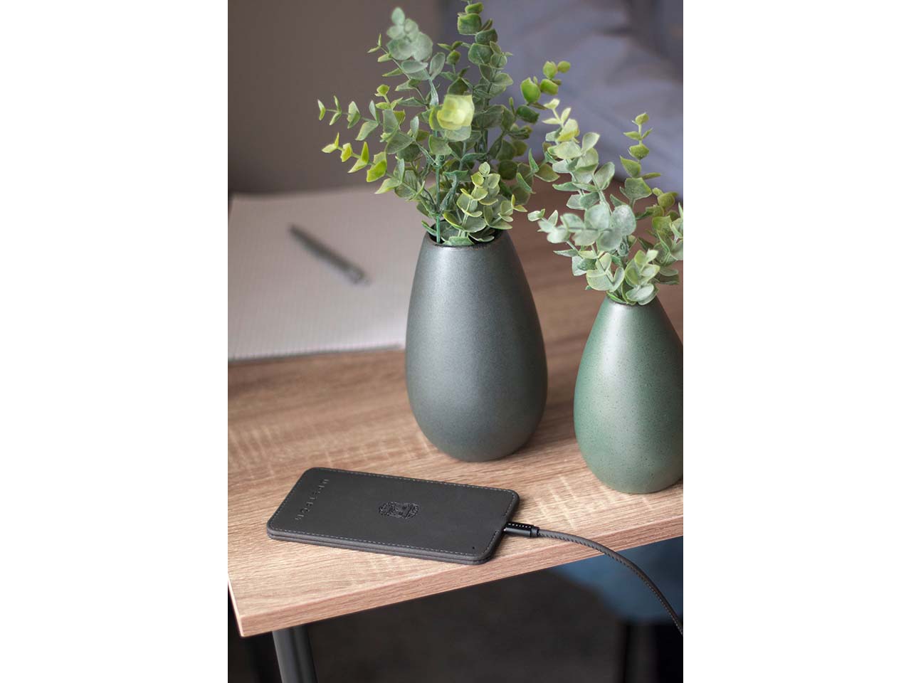 - Kabelloses Ladegerät aus recyceltem Karton und veganem Kunstleder