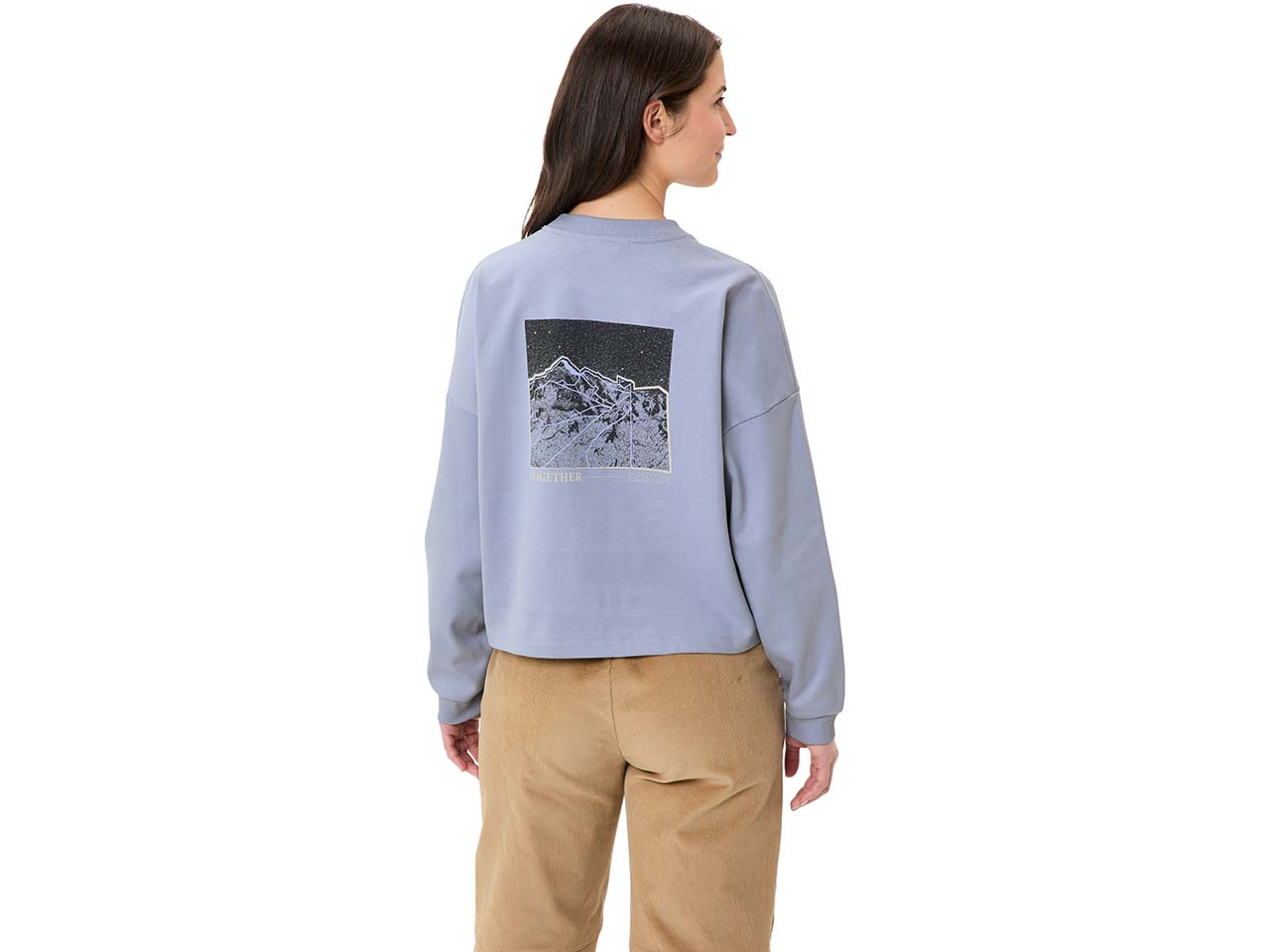 Hier treffen moderner, lässiger Style und höchster Tragekomfort aufeinander! Das Langarmshirt aus schwerer, GOTS-zertifizierter Bio-Baumwolle fühlt sich wunderbar weich auf der Haut an. Es ist modern geschnitten und sorgt für eine gecroppte Silhouette. Highlight ist der große Print auf dem Rücken. Die Rippbündchen an den Ärmelbündchen unterstützen den hohen Komfort. Der enganliegende Rundhalsausschnitt unterstreicht den modischen Stil.