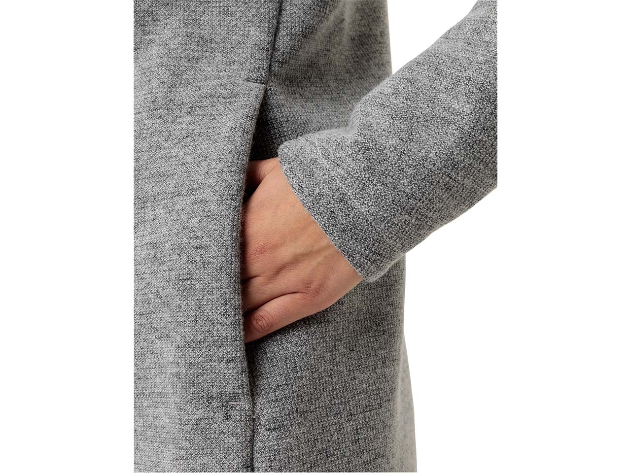 Dieser wunderschöne, sportlich-schicke Mantel begleitet Damen zuverlässig durch die Übergangszeit in Herbst und Frühling. Der hochwertige Materialmix mit anteiliger Merinowolle hält kuschelig warm. Innen hat der Übergangsmantel ein Fleecefutter, das sich besonders weich anfühlt und so den Tragekomfort erhöht. Zu diesem tragen auch die breiten Bundabschlüsse an Ärmeln und Saum bei. Der hohe Kragen und die angesetzte Kapuze sind perfekt, wenn es windig ist oder regnet. Zwei Eingriffstaschen ermöglichen es, kalte Hände aufzuwärmen oder Kleinigkeiten unterzubringen. Der Mantel hat einen praktischen 2-Wege-Reißverschluss, sodass man auch gut an die Hosentaschen rankommt.