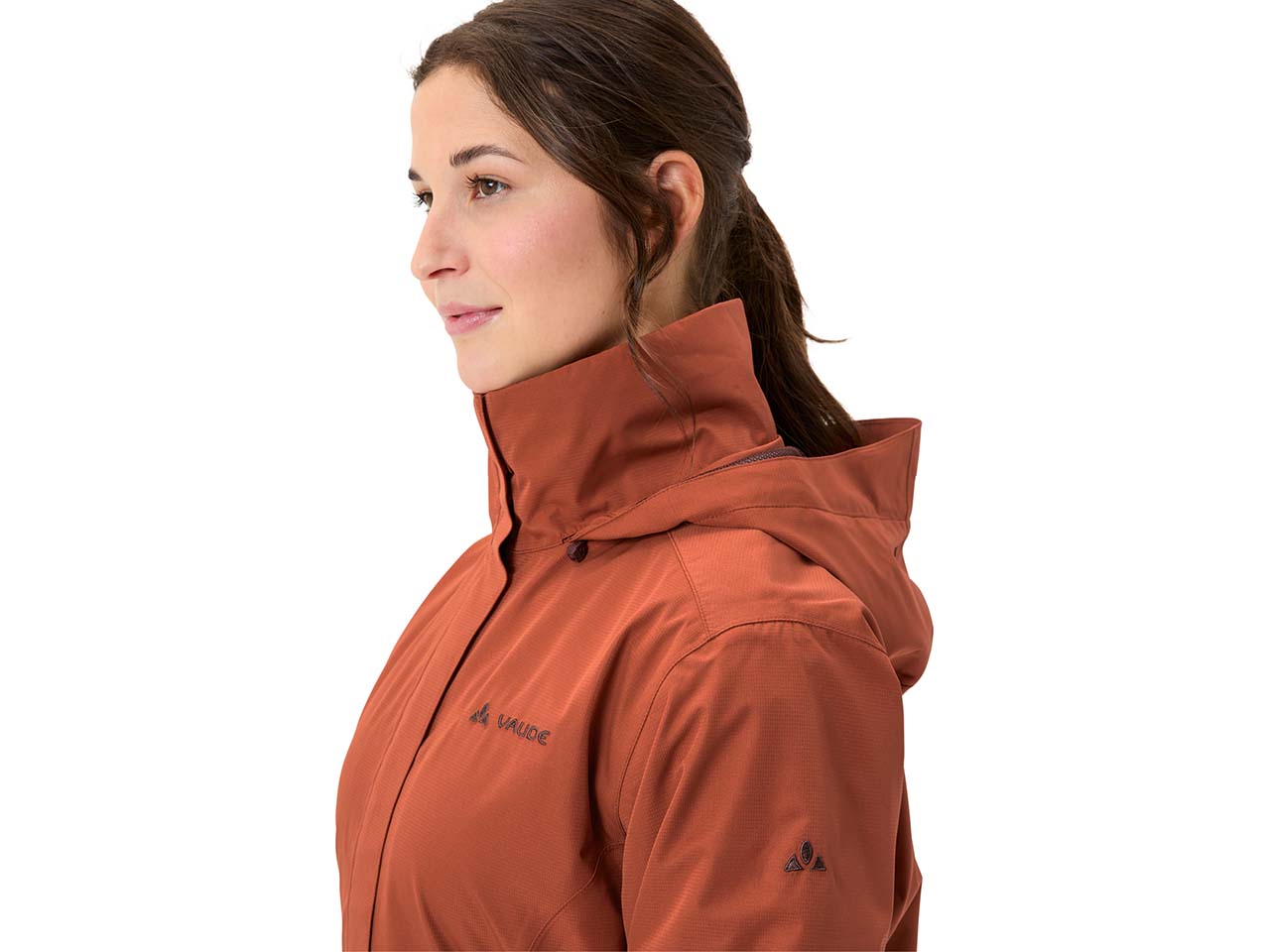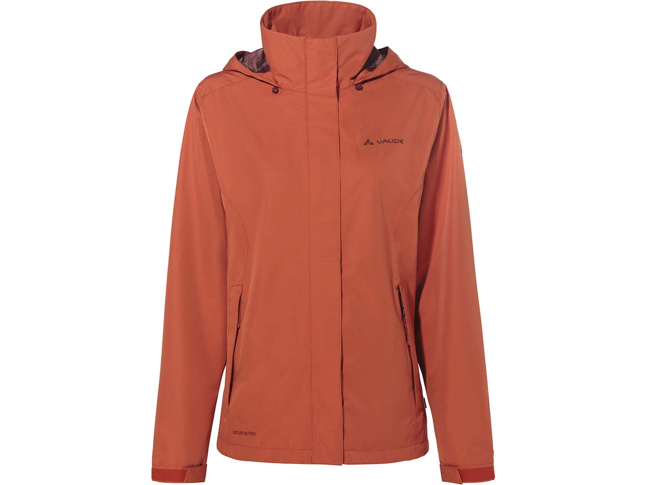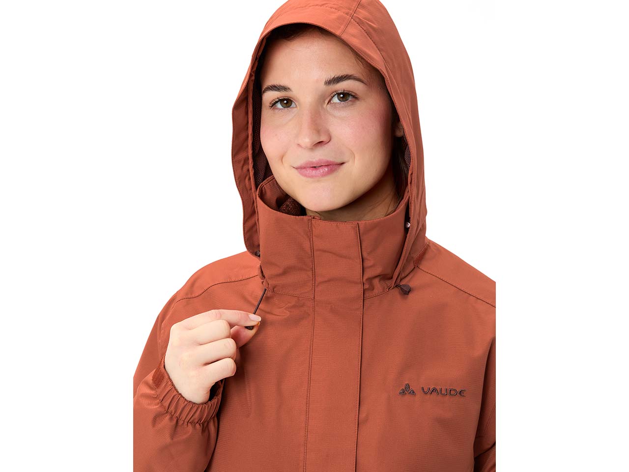 Entspannt draußen bei jedem Wetter: Dieser leichte, moderne Allrounder ist die perfekte Begleitung auf Trekking-Wandertouren, im Alltag auf dem Rad oder auf Reisen. Die multifunktional einsetzbare Damen-Outdoorjacke besteht aus umweltverträglichen Materialien und hat eine angenehm weiche Qualität. Als leichte Regenjacke verfügt sie über eine angeschnittene Kapuze, die weitenregulierbar und bei Bedarf im Kragen verstaubar ist. Auch Saum und Ärmelbündchen sind in der Weite anpassbar, sodass immer höchster Tragekomfort gewährleistet ist. Die lockere Passform wirkt besonders lässig. Die Wetterjacke von VAUDE ist wasserdicht, winddicht und atmungsaktiv.