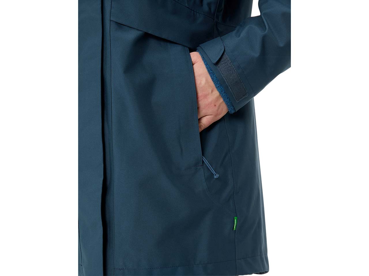 Die umweltverträgliche Ausrüstung Eco Finish sorgt dafür, dass das Textil ohne Fluorcarbone (PFC) wasserabweisend ist. Herkömmliche Outdoor-Bekleidung nutzt PFC als Imprägnierung auf dem Oberstoff, um so eine wasserabweisende Ausrüstung zu schaffen. Doch PFC sind chemische Verbindungen, die nicht abbaubar sind und im Verdacht stehen, gesundheitsschädlich zu sein.
