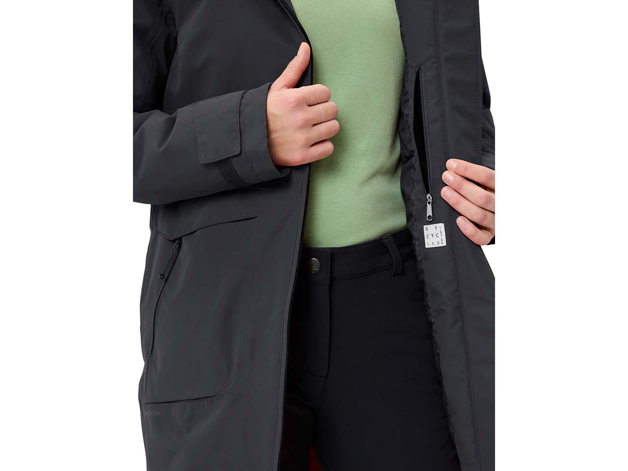 Es ist eine hochwertige Ceplex Active-Membran in das Kleidungsstück eingearbeitet, die für viel Atmungsaktivität sowie wind- und wasserdichte Eigenschaften (Wassersäule: 10.000 mm) sorgt. Durch die Membran kann keine Feuchtigkeit eindringen. Andererseits wird Wärme so nah am Körper gehalten. Die Technologie ist umweltschonend hergestellt und ebenso wie Eco Finish frei von Fluorcarbonen (PFC).