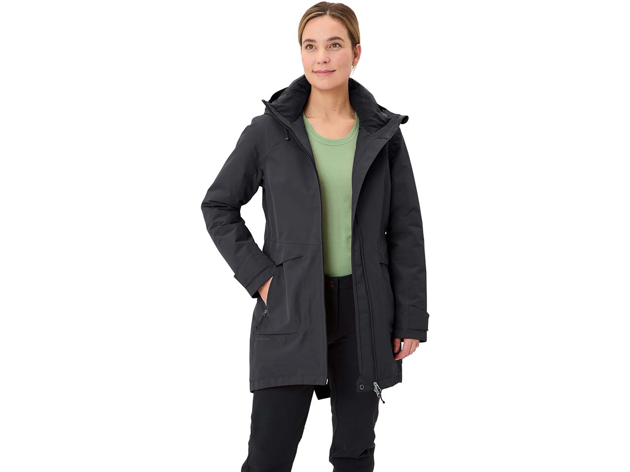 Das mittelständische Familienunternehmen VAUDE setzt auf Umwelt- und Sozialverträglichkeit: Das firmeneigene Green Shape Logo kennzeichnet langlebig designte Produkte aus nachhaltigen Materialien und ressourcenschonender Herstellung. Zusätzlich wird auf faire Löhne und gute Arbeitsbedingungen in der gesamten Lieferkette geachtet. Als Mitglied der unabhängigen Non-Profit-Organisation Fair Wear Foundation verpflichtet sich VAUDE, deren strengen Verhaltenskodex (Code of Labour Practices) einzuhalten. Das Produkt ist mit dem Siegel Grüner Knopf ausgezeichnet. Dieses kennzeichnet Textilien, die unter besonders hohen Sozial- und Umweltstandards hergestellt sind. Der gesamte Produktionsablauf wird demnach nach strengen Kriterien überwacht und somit ist die nachhaltige Fertigung sichergestellt. Durch dieses anerkannte Zertifikat werden außerdem Risiken wie Kinder- und Zwangsarbeit, Menschenrechtsverletzungen sowie Diskriminierungen und deren tatsächliche Auswirkungen regelmäßig überprüft. Für alle Mitarbeitenden ist in der produzierenden Fabrik ein Beschwerdemechanismus eingeräumt.