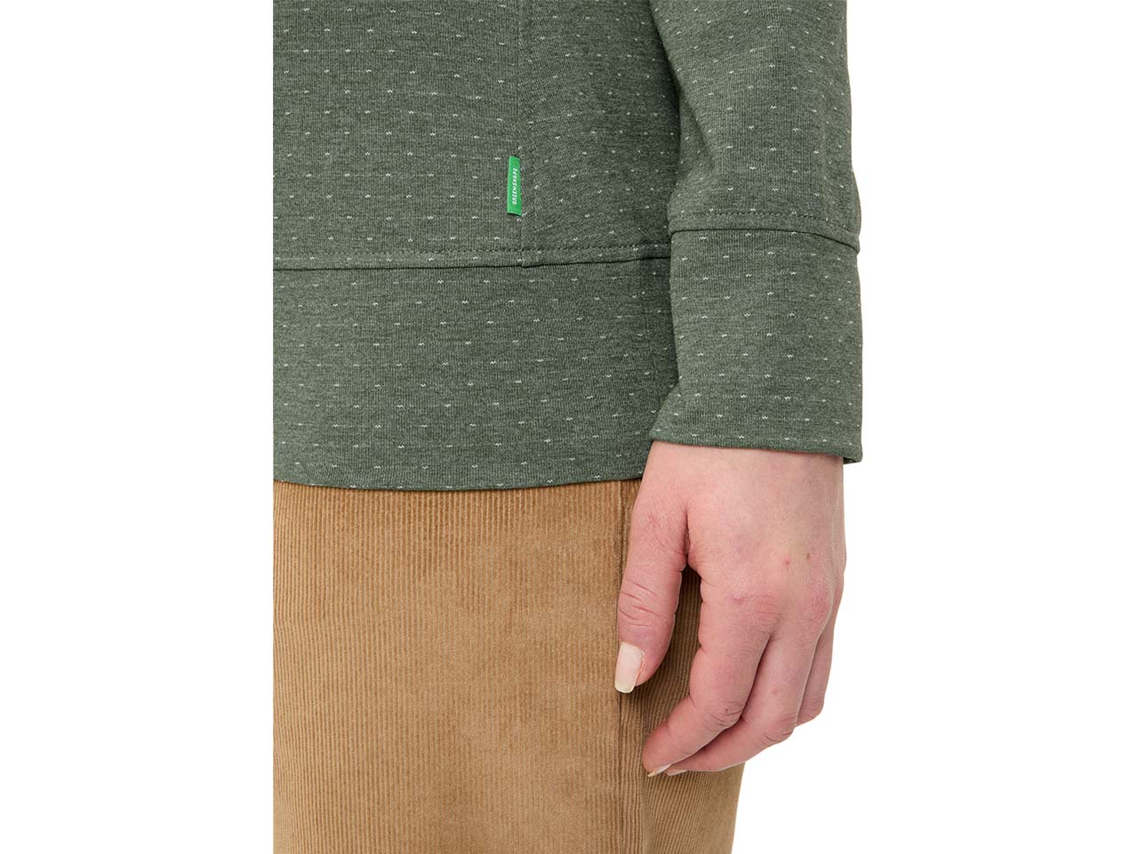 Der Materialmix macht den Unterschied: Das Textil besteht aus Bio-Baumwolle und recyceltem Polyester. Baumwolle ist ein nachwachsender Rohstoff, sehr strapazierfähig und macht Textilien langlebig. Zu den positiven Eigenschaften von Baumwolle gehört außerdem, dass sie atmungsaktiv ist, sich angenehm auf der Haut anfühlt und Schweißbildung verringert. Baumwolle ist pflegeleicht. Durch den recycelten Polyester ist das Textil sehr funktional. Das Material ist besonders pflegeleicht, trocknet schnell und knittert kaum. Polyester hat einen weichen Griff und ist außerordentlich leicht, weswegen es sich ideal für Outdoor- und Sportbekleidung eignet. Zusätzlich ist das Material wärmend und strapazierfähig, wodurch Textilien langlebig werden.