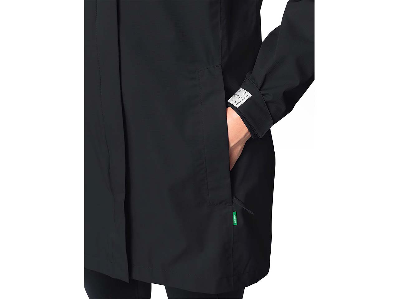 Die umweltverträgliche Ausrüstung Eco Finish sorgt dafür, dass das Textil ohne Fluorcarbone (PFC) wasserdicht ist. Herkömmliche Outdoor-Bekleidung nutzt PFC als Imprägnierung auf dem Oberstoff, um so eine wasserabweisende Ausrüstung zu schaffen. Doch PFC sind chemische Verbindungen, die nicht abbaubar sind und im Verdacht stehen, gesundheitsschädlich zu sein.