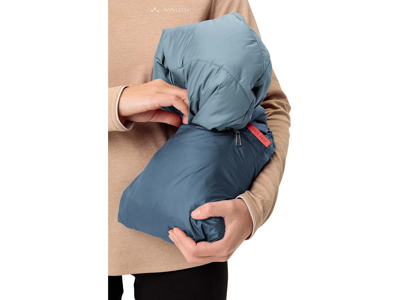 Leicht, kuschelig warm und atmungsaktiv – die Steppjacke von VAUDE begleitet Damen optimal durch kühle Tage! Im Inneren sorgt die PrimaLoft®-Wattierung mit 170 g/m² für ganz viel Wärme. Dabei ist die moderne, sportliche Jacke auch immer atmungsaktiv. Ideal, um sie für Wanderungen oder andere Outdoor-Aktivitäten zu nutzen. Bei der Herstellung wurde an die Umwelt gedacht: Im Zuge der RETHINK-Produktionsreihe besteht das Kleidungsstück aus recyceltem Polyester. Weitere Highlights sind die zwei Fronttaschen mit Reißverschluss, die Innentasche, um die Jacke zu verstauen, die angeschnittene Kapuze sowie die teilelastischen Ärmelbündchen.