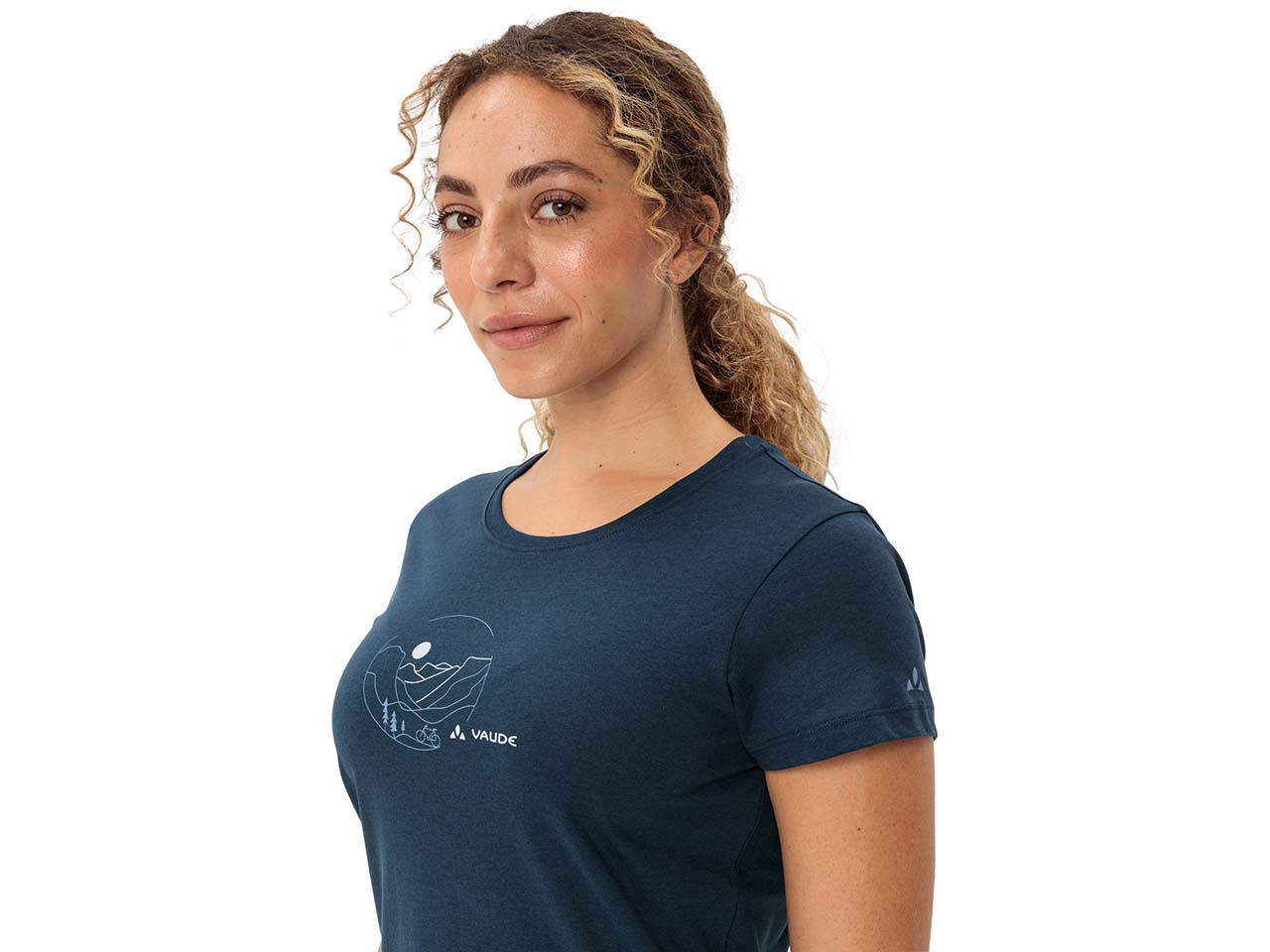 Genauso umweltverträglich wie Radfahren: Dieses trendige Shirt mit passendem, dezentem Print radelt der Konkurrenz in Sachen Nachhaltigkeit davon. Leicht, atmungsaktiv und schnelltrocknend ist das VAUDE T-Shirt perfekt für kurze und längere Ausfahrten sowie den sportlichen Alltag. Das Shirt vollbringt eine einmalige Leistung, denn es kombiniert weichen Tragekomfort mit voller Funktionalität. Das liegt an dem Materialmix aus 70 % GOTS-zertifizierter Bio-Baumwolle und 30 % antibakteriellem, atmungsaktivem TENCEL™ . Das sportive Design wird durch den Rundhalsausschnitt und die kurzen Ärmel komplettiert. Das Funktionsshirt ist regulär geschnitten und eine gute Wahl für Radfahrten im Alltag wie z.B. zur Arbeit oder zum Einkaufen aber auch auf Reisen.