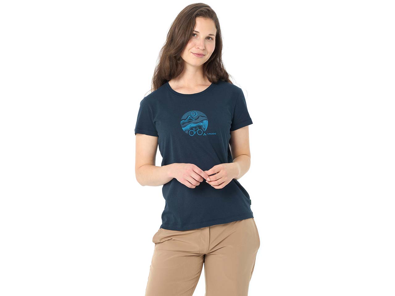 Genauso umweltverträglich wie Radfahren: Dieses trendige Shirt mit passendem, dezentem Print radelt der Konkurrenz in Sachen Nachhaltigkeit davon. Leicht, atmungsaktiv und schnelltrocknend ist das VAUDE T-Shirt perfekt für kurze und längere Ausfahrten sowie den sportlichen Alltag. Das Shirt vollbringt eine einmalige Leistung, denn es kombiniert weichen Tragekomfort mit voller Funktionalität. Das liegt an dem Materialmix aus 70 % GOTS-zertifizierter Bio-Baumwolle und 30 % antibakteriellem, atmungsaktivem TENCEL™ . Das sportive Design wird durch den Rundhalsausschnitt und die kurzen Ärmel komplettiert. Das Funktionsshirt ist regulär geschnitten und eine gute Wahl für Radfahrten im Alltag wie z.B. zur Arbeit oder zum Einkaufen aber auch auf Reisen.