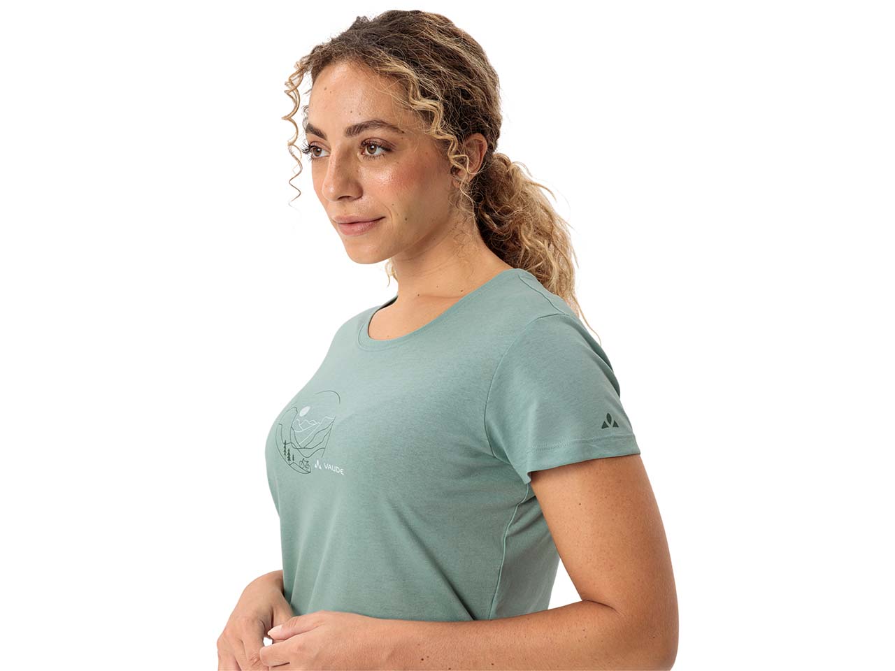 Genauso umweltverträglich wie Radfahren: Dieses trendige Shirt mit passendem, dezentem Print radelt der Konkurrenz in Sachen Nachhaltigkeit davon. Leicht, atmungsaktiv und schnelltrocknend ist das VAUDE T-Shirt perfekt für kurze und längere Ausfahrten sowie den sportlichen Alltag. Das Shirt vollbringt eine einmalige Leistung, denn es kombiniert weichen Tragekomfort mit voller Funktionalität. Das liegt an dem Materialmix aus 70 % GOTS-zertifizierter Bio-Baumwolle und 30 % antibakteriellem, atmungsaktivem TENCEL™ . Das sportive Design wird durch den Rundhalsausschnitt und die kurzen Ärmel komplettiert. Das Funktionsshirt ist regulär geschnitten und eine gute Wahl für Radfahrten im Alltag wie z.B. zur Arbeit oder zum Einkaufen aber auch auf Reisen.