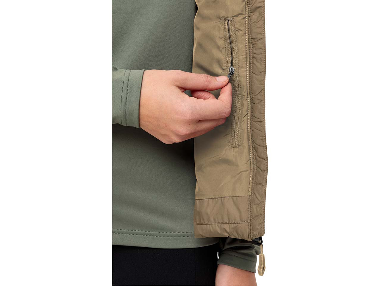 Die Isolationsschicht ist aus PrimaLoft® hergestellt. Die hochwertige, synthetische Faser stellt eine Alternative zu Gänsedaunen dar. Die Isolation bietet einen effektiven, wasserabweisenden Schutz gegen Kälte. Am Ende des Gebrauchs kann PrimaLoft® unter bestimmten Bedingungen (wie z.B. auf einer Mülldeponie oder im Ozean) biologisch abgebaut werden. Das Material wird von natürlich vorkommenden Mikroben um ein Vielfaches schneller verzehrt als herkömmliche Synthetikfasern.