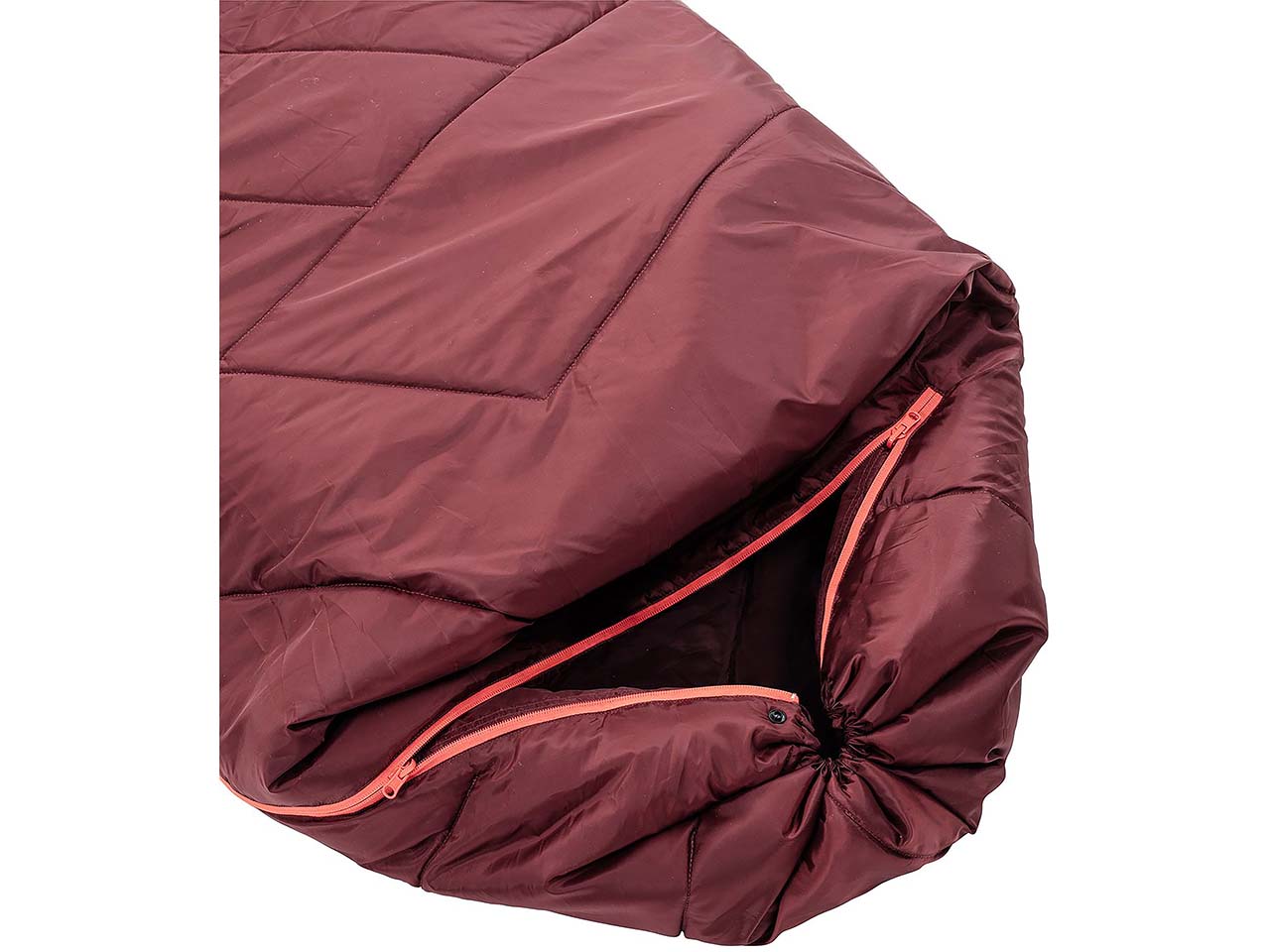 Dieser Deckenschlafsack ist zwischen Spätfrühling und Frühherbst ein echter Alleskönner, der bei Outdoor-Abenteuern für viel Wärme sorgt. Er lässt sich mit allen anderen Deckenschlafsäcken von VAUDE koppeln, sodass ein 2-Personen-Schlafsack daraus entsteht. Alternativ kann er als warme Bettdecke oder sogar als wärmender Poncho eingesetzt werden. Im Inneren befindet sich eine Kunstfaserisolation aus recyceltem Polyester, die schnell trocknet und sich durch einen hohen Wärmerückhalt auszeichnet. Ist es mal kälter, kann das Kopfteil in eine dreidimensionale Kapuze umfunktioniert werden. Der Deckenschlafsack ist Teil von VAUDEs Kreislaufkonzept und als solcher materialeffizient geschnitten, robust und leicht reparierbar. Er eignet sich für Temperaturen bis -11 °C und hat ein geringes Packmaß von 20 x 20 cm.