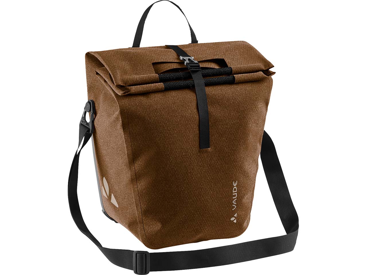 Diese nachhaltige Innovation darf an keinem Hinterrad fehlen: Die Fahrradtasche von VAUDE ist ein modernes Meisterwerk, das inklusive aller Befestigungskomponenten vollständig aus recyceltem Material gefertigt ist. Sogar die Rückenplatte! Für den Recyclingkunststoff werden zu 64 % Verpackungsabfälle aus deutschen Haushalten genutzt. Natürlich wurde neben der umweltgerechten Herstellung auch an die Funktionalität gedacht. Der PVC-freie Shopper in Textiloptik ist wasserdicht verschweißt und lässt sich rechts oder links am Gepäckträger anbringen. Mit einem kleinen Bügelschloss kann die Tasche direkt am QRM-Haken verriegelt werden. Zum Tragen der Fahrradtasche sind die Griffe mit stabilem, weichem Polyesterband perfekt. Der Schultergurt ermöglicht ein lässiges Tragen über der Schulter und lässt sich bei Bedarf abnehmen. Das Beste: Durch den vergrößerten Eingriff ist das Ein- und Auspacken unkompliziert. Der Staubalg im Inneren fixiert den Inhalt optimal. Reflektierende Logos sorgen für zusätzliche Sicherheit im Straßenverkehr. In der Lieferung enthalten sind zwei Fahrradtaschen. Jede hat ein Volumen von 23 + 7 Liter.
