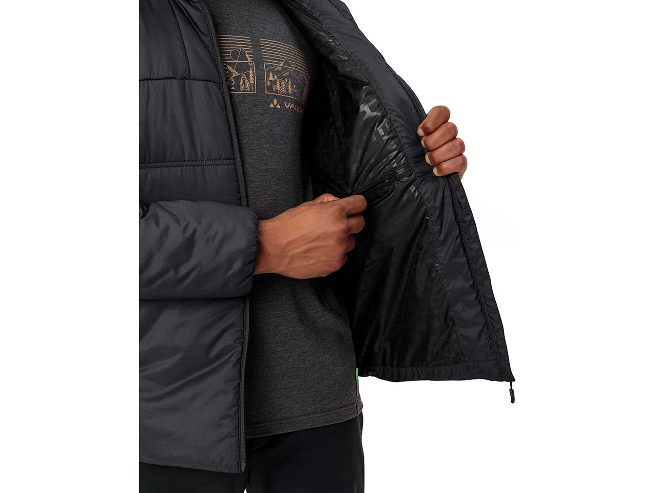 Modern, leicht und richtig schön warm – diese Steppjacke von VAUDE ist in der Übergangszeit und im Winter eine exzellente Wahl. Als Teil der RETHINK-Serie bestehen Hauptmaterial und Futter zu 100 % aus recyceltem PET. Dabei geht die Funktionalität nicht verloren. Die Isolationsjacke hat eine angeschnittene Kapuze, die bei Wind und Regen schützt. In den zwei abgedeckten Fronttaschen ist Platz für alles Wichtige. Die Innentasche eignet sich z.B. für das Smartphone. Die elastischen Ärmelbündchen unterstützen den hohen Tragekomfort.