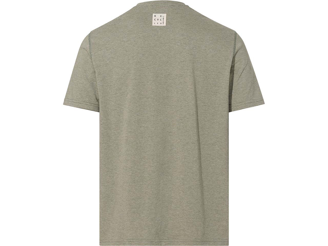Lässiger Streifenlook für sommerliche Tage! Das luftige Herren-Shirt ist perfekt für bequeme Freizeit-Outfits. Durch den hochwertigen Materialmix aus recycelter Baumwolle und recyceltem Polyester entsteht ein hoher Tragekomfort und eine funktionale Qualität. Das T-Shirt ist pflegeleicht und trocknet schnell. Modisch überzeugt das Oberteil mit Rundhalsausschnitt und überschnittenen Schultern.