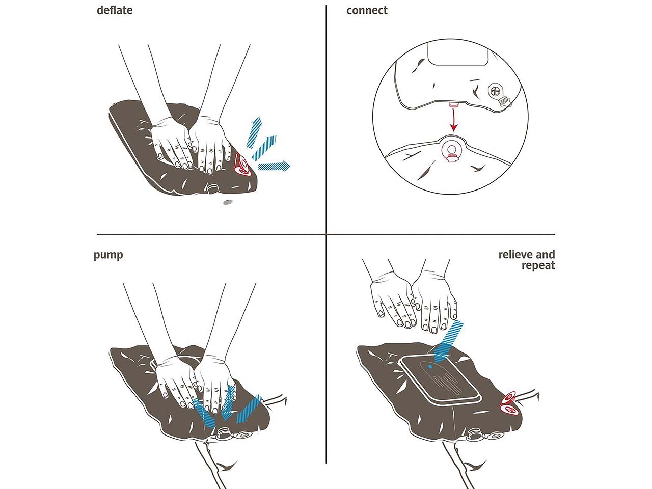 Auf diesem Kopfkissen ist es ganz einfach, beim Wandern, Trekking oder Campen gut zu schlafen! Das klein verpackbare Kissen kann aber noch mehr als nur Gemütlichkeit: Es kann auch benutzt werden, um die meisten gängigen Matten aufzupumpen. Einfach Ventil aufstecken, Kissen mehrmals mit Fuß oder Hand komprimieren und fertig. Vorteil der Verwendung des Pumpkissens ist es, dass so keine Feuchtigkeit aus der Atemluft in das Innere der Matratze gelangt. Durch das Zweikammersystem und den weichen Schaumstoff passt sich das Kopfkissen perfekt der Kopfform und Liegeposition an.